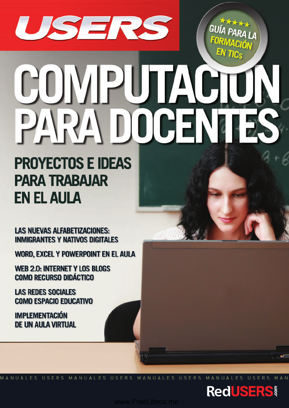 In this book, teachers will discover how to work with computers and connectivity in classroom. The main chapters of the book covers: Office in class, Web 2.0, Social Networks, Blogs, Virtual Clasrooms, etc. COMPUTER EDUCATION FOR TEACHERS CONTENIDO N I V E L D E U S U A R I O PRINCIPIANTE INTERMEDIO AVANZADO EXPERTO En RedUSERS.com encontrará una gran variedad de recursos y software relaciona- do, que le servirán como complemento al contenido del libro. Además, tendrá la posibilidad de estar en contacto con los editores, y de participar del foro de lec- tores, en donde podrá intercambiar opiniones y experiencias. Si desea más información sobre el libro puede comunicarse con nuestro Servicio de Atención al Lector: usershop@redusers.com 1 | LAS NUEVAS ALFABETIZACIONES Nativos e inmigrantes digitales / Alfabetización informática y digital / Estándares de competencias en TICs para docentes 2 | SISTEMA INFORMÁTICO Sistemas de información / Características de una computadora / Hardware / Redes / PC, notebook, netbook, laptop / Software / Seguridad informática 3 | EL PROCESADOR DE TEXTOS Mucho más que palabras / La interfaz de Word 2010 / Crear documentos / Operaciones con archivos de Word / Insertar elementos en un documento / Ideas para trabajar / Diagramas SmartArt 4 | PLANILLAS DE CÁLCULO Mucho más que una calculadora / Elementos / Administrar hojas de cálculo / Ingresar datos / Aplicar formatos / Fórmulas / Funciones / Insertar gráficos / Minigráficos / Ideas para trabajar en el aula / Ecuaciones lineales y cuadráticas / Análisis de datos con tablas dinámicas 5 | PRESENTACIONES CON DIAPOSITIVAS Mucho más que un pizarrón / La interfaz de PowerPoint 2010 / Animaciones y transiciones / Ideas para trabajar / Crear presentaciones efectivas 6 | CORREO ELECTRÓNICO El correo electrónico como recurso didáctico / Crear una cuenta de correo electrónico / Crear un mensaje / Administrar contactos / Organización del correo / Ideas para trabajar 7 | EDUCACIÓN 2.0 Internet como recurso didáctico / Web 2.0 / Competencias para el manejo de información / Los blogs como recurso didáctico / Las redes sociales como espacio educativo / Aprendizaje colaborativo / Ideas para trabajar 8 | COMPUTACIÓN ''EN LA NUBE'' Ventajas y desventajas / Google Docs, Office Web Apps, Scribd y Slideshare / El celular como recurso didáctico / Proyectos para trabajar / Cuestionarios en la nube 9 | EL AULA VIRTUAL Ventajas y desventajas / Plataformas / Moodle / Skype / Proyectos para trabajar APLIQUE LAS NUEVAS TECNOLOGÍAS EN CLASE APLIQUE LAS NUEVAS TECNOLOGÍAS EN CLASE COMPUTACIÓN PARA DOCENTES por Virginia Caccuri Ser docente en la actualidad significa enfrentarse a diario con nuevos desafíos. Uno de ellos es el de superar la barrera tecnológica que parece eri- girse entre los alumnos y los docentes frente a la inclusión de las nuevas tec- nologías de la información en el ámbito educativo. Elegir la computadora y sus múltiples herramientas como recurso didáctico implica comprender que las nuevas tecnologías constituyen un desafío a los conceptos tradicionales de enseñanza y aprendizaje. Las TICs han generado un nuevo escenario en el aula, y este libro intenta recuperar el protagonismo del docente como el que provoca, facilita y guía el proceso para que sus alumnos aprendan. Virginia Caccuri es Profesora de Informática, especializada en Informática Educativa. Se desempeña como docente en los niveles Secundario, Terciario y Bachillerato para Adultos. Además, ha dictado cursos de capacitación docente en las áreas de Informática Educativa y de Tecnología de la C.A.B.A., y en el marco de la Red Federal de Formación Docente Continua de la DGCE de la Provincia de Bs. As., Argentina. "ESTE LIBRO INTENTA RECUPERAR EL PROTAGONISMO DEL DOCENTE COMO EL QUE PROVOCA, FACILITA Y GUÍA EL PROCESO PARA QUE SUS ALUMNOS APRENDAN'' Tapa Docentes.qxp 06/03/2012 13:08 PÆgina 1 www.FreeLibros.me http://www.redusers.com DESCUBRA CÓMO CREAR, ADMINISTRAR Y POTENCIAR BASES DE DATOS DOMINE LA VERSIÓN MÁS RECIENTE Y CONFIABLE DE EXCEL MÁS DE 100 CONSEJOS E IDEAS PRÁCTICAS, ÚTILES Y SORPRENDENTES APRENDA CÓMO CREAR BLOGS ATRACTIVOS SIN CONOCIMIENTOS PREVIOS CONÉCTESE CON LOS MEJORES LIBROS DE COMPUTACIÓN >> MICROSOFT / OFFICE >> 320 PÁGINAS >> ISBN 978-987-663-025-2 >> MICROSOF >> 320 PÁGIN >> ISBN 978- >> EXCEL / HOME >> 352 PÁGINAS >> ISBN 978-987-1773-15-2 >> EXCEL / HO >> 352 PÁGIN >> ISBN 978- >> MICROSOFT / WINDOWS >> 352 PÁGINAS >> ISBN 978-987-1773-17-6 >> MICROSOF >> 352 PÁGIN >> ISBN 978- >> 200 RESPUESTAS / HOME >> 320 PÁGINAS >> ISBN 978-987-663-037-5 >> 200 RESP >> 320 PÁGIN >> ISBN 978- +54 (011) 4110-8700 MÁS INFORMACIÓN: CONTÁCTENOS: 3 13 Bombo - RT - LIBRO Computacion para docentes.indd 1Bombo - RT - LIBRO Computacion para docentes.indd 1 05/03/2012 18:25:1505/03/2012 18:25:15 www.FreeLibros.me http://usershop.redusers.com/ mailto:usershop@redusers.com COMPUTACIÓN PARA DOCENTES PROYECTOS E IDEAS PARA TRABAJAR EN EL AULA por Virginia Caccuri 001-012_00_InfDoc.indd 1001-012_00_InfDoc.indd 1 06/03/2012 02:17:50 p.m.06/03/2012 02:17:50 p.m. www.FreeLibros.me Copyright © MMXII. Es una publicación de Fox Andina en coedición con DÁLAGA S.A. Hecho el depósito que marca la ley 11723. Todos los derechos reservados. Esta publicación no puede ser reproducida ni en todo ni en parte, por ningún medio actual o futuro sin el permiso previo y por escrito de Fox Andina S.A. Su infracción está penada por las leyes 11723 y 25446. La editorial no asume responsabilidad alguna por cualquier consecuencia derivada de la fabricación, funcionamiento y/o utilización de los servicios y productos que se describen y/o analizan. Todas las marcas mencionadas en este libro son propiedad exclusiva de sus respectivos dueños. Impreso en Argentina. Libro de edición argentina. Primera impresión realizada en Sevagraf, Costa Rica 5226, Grand Bourg, Malvinas Argentinas, Pcia. de Buenos Ai