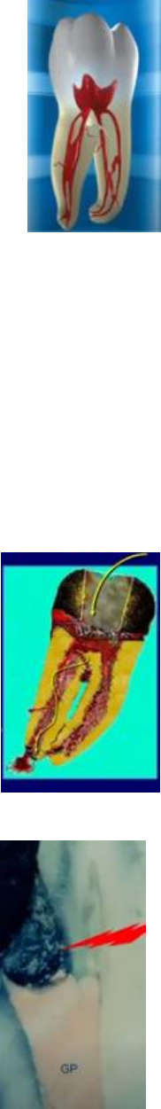 OBTURACION DEL SISTEMA DE CONDUCTO RADICULAR La obturación del conducto radicular es la obliteración del espacio que ocupaba la pulpa dental con un material dimensionalmente estable, biológicamente compatible, radiopaco (sino no, no sirve), de fácil remoción si es que fuera necesario desobturar, y que si tiene que durar toda la vida que sea estable. En base a una buena preparación seguramente tendremos una buena obturación. Las fases fundamentales del tratamiento endodontico: 1. Diagnóstico: no es lo mismo tratar una biopulpectomia que tiene una pulpa inflamada que una gangrena pulpar, que tiene un material infectado, contaminado con microorganismos. Debemos partir de un buen diagnóstico. 2. Limpieza y conformación del CR (conducto radicular) 3. Obturación del CR 4. Control clínico – radiográfico inmediato y a distancia El objetivo de la obturación es evitar que se produzca una filtración, tanto desde el ápice al interior del conducto como desde la corona al interior; el ápice al interior del conducto es evitar la filtración de líquidos tisulares. Podemos hacer una muy buena reparación a nivel coronario pero lo importante es la filtración a nivel apical; el objetivo de la obturación tridimensional con un material dimensionalmente estable, biológicamente compatible es impedir la filtración del líquido tisular ¿Qué son los líquidos tisulares? Son los líquidos que están bañando las células de los tejidos. Estos líquidos si tienen la oportunidad pueden entrar y salir del conducto radicular, tienen un alto contenido proteico, una temperatura ideal, luego entran en descomposición, vuelven a salir porque van y vienen, y son altamente irritantes para los tejidos periapicales. La filtración coronaria va a depender pura y exclusivamente en la rehabilitación post endodoncia. conducto expuesto a la saliva: si al paciente se le salió la obturación y nunca volvió, va a haber filtración. La obturación trata de impedir el pasaje, el problema lo tenemos en estos últimos milímetros entonces trata de impedir el pasaje de bacterias y toxicas desde el periápice al conducto; entran los líquidos tisulares, se descomponen; o supongan que limpiaron y hay un proceso periapical, entonces como no está obturado tridimensionalmente, todo ese líquido tisular entra y sale con alto contenido proteico, entra en descomposición es altamente irritante para los tejidos periapicales. Miren esta imagen en donde a pesar de haber hecho esto en la mano son diafagnizaciones con diferentes técnicas de obturación, miren como hay filtración. Incluso haciendo las cosas muy bien, en la mano, miren los problemas que se pueden ocasionar. Entonces decimos que el sellado coronal y el apical son igual de importantes. Puede estar muy bien obturado el conducto radicular y falla la rehabilitación post operatoria. Puede estar muy bien realizada la rehabilitación post-endodoncia, pero falla la obturación del conducto apical. El tratamiento endodontico no ha finalizado hasta no haberse hecha la restauración definitiva. Si no se logra un buen sellado coronario y apical el pronóstico es sencillo fracaso. Ustedes terminan de hacer la endodoncia y mandan al rehabilitador y el determinara que es lo más conveniente para esa pieza dentaria. Es tan importante un sellado como el otro. La PREVENCION de la filtración coronaria post tratamiento endodontico, constituye un paso fundamental para asegurar el éxito a distancia. La obturación es el RETRATO de la endodoncia. Acá tenemos que ver muchas cosas, entre esas: si se respetó la anatomía como primera medida, si la masa es radiopaca, que no tiene espacios radiolúcidas, si es una masa compacta, densa, que está perfectamente adaptada a la pared dentinaria, que cumple con los requisitos de que sea infundibuliforme donde la porción más estrecha es a nivel apical y la porción más dilatada es a nivel del tercio cervical; que coincida con nuestra longitud de trabajo, con nuestra conductometria y nuestra conometria. Todo esto es lo que debemos observar y acá vamos a ver lo que hicimos de más y lo que hicimos de menos. Cuando terminamos decimos si nos sobreextendimos, o que falto, y solo lo podemos ver al terminar. TRIDIMENSIONALIDAD - La obturación debe llenar de manera tridimensional el conducto conformado. - De nada vale alcanzar de manera satisfactoria el nivel apical si permanecen espacios laterales vacíos. Si permanecen espacios vacíos no se cumple con los objetivos de la obturación y de esta manera se produciría una filtración del líquido tisular debido a los espacios vacios. Asi como fueron formando tridimensionalmente el conducto radicular, siguiendo las agujas del reloj, de la misma manera se debe obturar el conducto, empleando la técnica que ustedes quieran, pero sin dejar espacios vacíos. VALORACION DE LA OBTURACION El único medio de valoración inmediata de la obturación es la radiografía que debido a sus limitaciones nos da una información bastante imprecisa; porque es una imagen bidimensional, y nuestra pieza dentaria no es plana, es tridimensional, entonces no nos da una información exacta; varias veces debemos valernos de otras técnicas para ver en más detalle (cone beam). De todas maneras, proporciona algunos criterios para valorar la calidad de la obturación. Valora la obturación, si esta lo suficiente compactado, que no haya zonas radiolúcidas, si llego al límite apical de la preparación, todo eso lo podemos valorar nosotros con la radiografia. Finalidades de la obturación: Evitar el pasaje de líquidos tisulares al interior del conducto radicular. /PREGUNTA DE EXAMEN/ 1. Cierre biológico: inducir al organismo a que me forme un cierre biológico. Esto quiere decir que le debemos dar las condiciones a la pieza dentaria, al organismo, para que me deposite un tejido duro a nivel apical para que me cierre ese espacio y me aísle totalmente este pequeño sistema llamada pieza dentaria del gran sistema que so