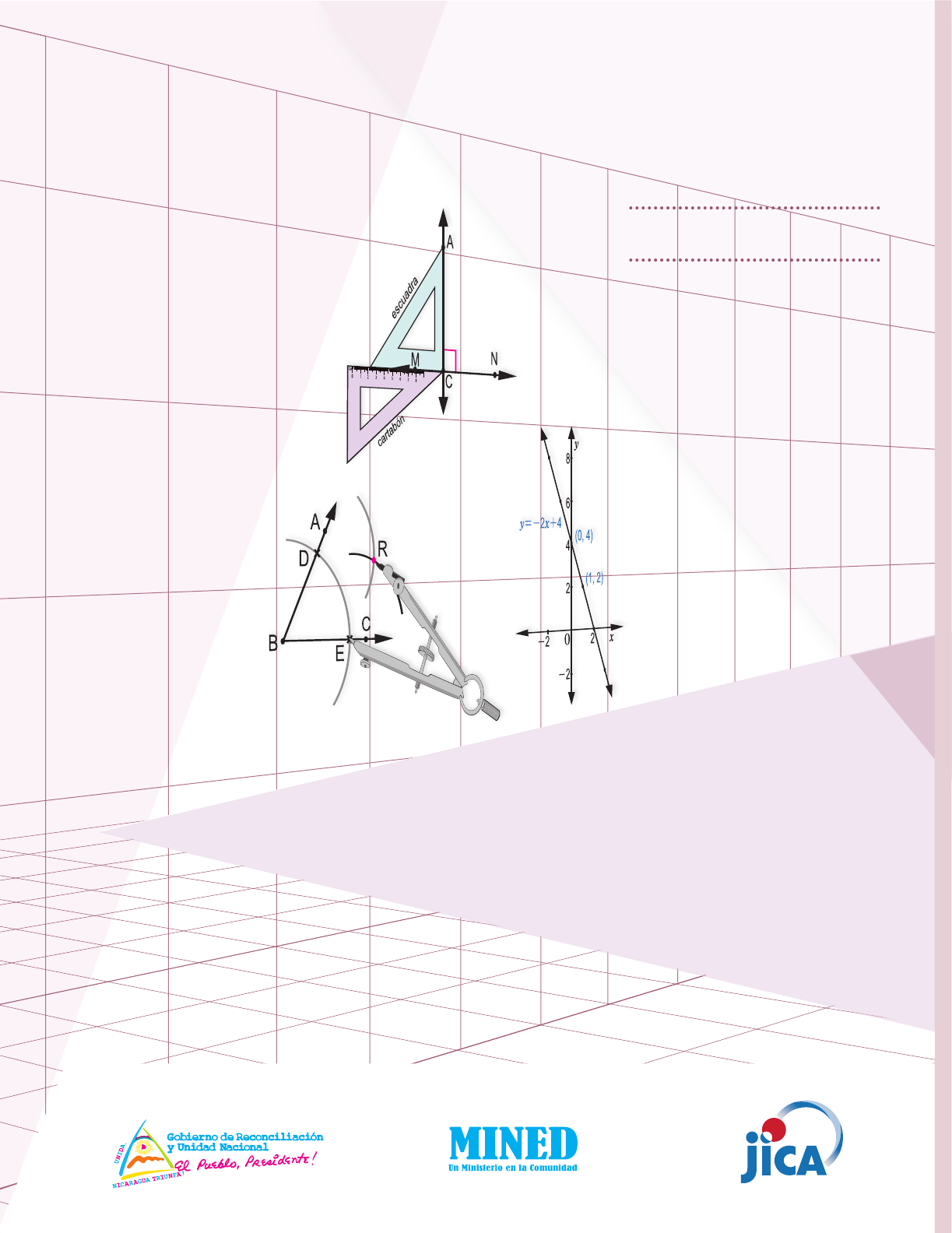 Séptimo grado MATEMÁTICA 7 Libro de Texto Educación Secundaria COORDINACIÓN GENERAL REVISIÓN Y ASESORÍA TÉCNICA CIENTÍFICAAUTORES COLECTIVO DE AUTORES INSTITUTOS QUE PARTICIPARON EN LA VALIDACIÓN Profesora María Elsa Guillén Profesora Melba López Montenegro Profesor Julio César Canelo Castillo Sociedad Matemática de Nicaragua Profesora Gloria Parrilla Rivera Profesor Jorge Alberto Velásquez Benavidez Melissa Lizbeth Velásquez Castillo Nubia Aracelly Barreda Rodríguez Humberto Antonio Jarquín López Gregorio Isabel Ortiz Hernández MINED UNAN - MANAGUA UNAN - LEÓN Francisco Emilio Díaz Vega Nubia Aracelly Barreda Rodríguez Anastacio Benito González Funes Humberto Antonio Jarquín López Melissa Lizbeth Velásquez Castillo Domingo Felipe Aráuz Chévez Juan Carlos Caballero López Armando José Huete Fuentes Célfida del Rosario López Sánchez Gregorio Isabel Ortiz Hernández Primitivo Herrera Herrera Orlando Antonio Ruiz Álvarez Alberto Leonardo García Acevedo Marlon José Espinoza Espinoza Hilario Ernesto Gallo Cajina Colegio Clementina Cabezas, Managua, Managua Instituto Juan José Rodriguez, Jinotepe, Carazo Colegio Fernando Gordillo, Managua, Managua San Benito #1, Chinandega, Chinandega Colegio Tomas Borge, Mateare, Managua Instituto Nacional Rubén Darío, Posoltega, Chinandega Colegio San Cayetano, San Rafael del Sur, Managua Jhon F. Kenedy, León, León Instituto Nacional La Salle, Diriamba, Carazo Salomón de la Selva, León, León EQUIPO DE DIAGRAMACIÓN Lissette Margina Serrano Vallecillo ˖ Maribel del Socorro Cuarezma López Primera Edición, 2019 Derechos reservados. Prohibida su venta y/o reproducción con fines comerciales por cualquier medio, sin previa autorización del Ministerio de Educación (MINED), de la República de Nicaragua. Cooperación Técnica de Japón a través de la Agencia de Cooperación Internacional del Japón (JICA ) La presente publicación ha sido reproducida con el apoyo de la Agencia de Cooperación Internacional del Japón (JICA ) a través del Proyecto para el Aprendizaje Amigable de Matemática en Educación Secundaria (NICAMATE). 7mo PRESENTACIÓN Estimado estudiante: El texto que tienes en tus manos es un esfuerzo realizado en el marco del “Proyecto para el Aprendizaje Amigable de Matemática en Educación Secundaria” (NICAMATE), implementado por el Ministerio de Educación en coordinación con la UNAN – MANAGUA, UNAN – LEÓN, y el apoyo técnico de la Agencia de Cooperación Internacional del Japón (JICA). La matemática es una herramienta potente en el desarrollo de cada una de nuestras vidas; nos ayuda a resolver problemas complejos con mayor facilidad, a contar con un razonamiento matemático capaz de ser crítico, analítico y práctico. En definitiva, a vivir con éxito, en un mundo cada vez más desafiante ante los cambios sociales y los avances tecnológicos. Cada contenido de este libro, es abordado de manera que resulta fácil de comprender, y con el apoyo de tu docente lograrás adquirir conceptos y procedimientos matemáticos, necesarios para el desarrollo de conocimientos y habilidades que favorecen tu formación integral. Tenemos la certeza que tu encuentro con estos saberes será muy satisfactorio, ya que este libro ha sido elaborado por un equipo altamente calificado que nos plantea una metodología amigable, retadora y exigente, con el propósito de que los conocimientos matemáticos te enriquezcan, sean mejor entendidos y puedan integrarse en tus quehaceres cotidianos con mayor facilidad. Mucho ánimo ya que contamos contigo para desarrollar una mejor Nicaragua. Atentamente, Ministra de Educación Miriam Soledad Raudez INTRODUCCIÓN Representa el problema inicial, el cual se debe leer y analizar identificando las condiciones que plantea y lo que se pregunta. Representa la solución del problema inicial explicada paso a paso. En cada página del libro de texto se presentan los momentos de una clase de 45 minutos: Representa la conclusión de la clase, donde se propone el esquema de solución del problema inicial, en algunos casos también se presentan conceptos importantes usados en el problema. Los ejemplos que se presentan son variantes del problema inicial. Representa los ejercicios propuestos, es importante que intenten resolver los ejercicios por ustedes mismos. 71 ( x+ )+ ( x- ) ( x+ )+ ( x- )=( )( x)+( )( )+( )( x)+( )(- ) = x+ + x- = x+ x+ - = x+ ( x+ )+ ( x- ) (x+ )+ ( x- ) ( x- )+ (x- ) ( x+ )- (x- ) (x- )- (- x- ) ( x+ )- (x- )=( )( x)+( )( )-( )(x)-( )(- ) = x+ - x+ = x- x+ + = x+ (x- )- (- x- )=( )(x)+( )(- )-( )(- x)-( )(- ) = x- + x+ = x+ x- + = x- (x+ )- ( x+ ) ( x- )- (x- ) (x- )- (- x+ ) a(b+c)=ab+ac Ejemplo En Comprobemos lo aprendido se presentan una serie de ejercicios representativos de contenidos anteriores, el objetivo de estas clases es asegurar un tiempo de ejercitación que permita afianzar los conocimientos adquiridos y aclarar cualquier duda que puedan tener de los contenidos estudiados. En Desafío se presentan casos especiales o contenidos de mayor complejidad. Desafío Ejemplo Sección 4: Operaciones combinadas Índice Operaciones con Números Naturales, Fracciones y Decimales 1 2 88 126 148 8 108 136 153 117 160 16 56 25 65 38 48 74 79 87Unidad 1: Sección 1: Operaciones con números naturales Sección 2: Operaciones con fracciones y decimales Números Positivos y Negativos Álgebra Unidad 2: Unidad 3: Sección 1: Los números positivos, negativos y el cero Sección 1: Expresiones algebraicas Sección 2: Adición y sustracción con números positivos y negativos Sección 2: Operaciones con expresiones algebraicas Sección 3: Multiplicación y división con números positivos y negativos Ecuaciones de Primer GradoUnidad 4: Sección 1: Ecuaciones de primer grado Sección 2: Solución de ecuaciones de primer grado ProporcionalidadUnidad 5: Sección 1: Proporcionalidad directa Sección 2: Proporcionalidad inversa Sección 3: Aplicaciones de proporcionalidad direct