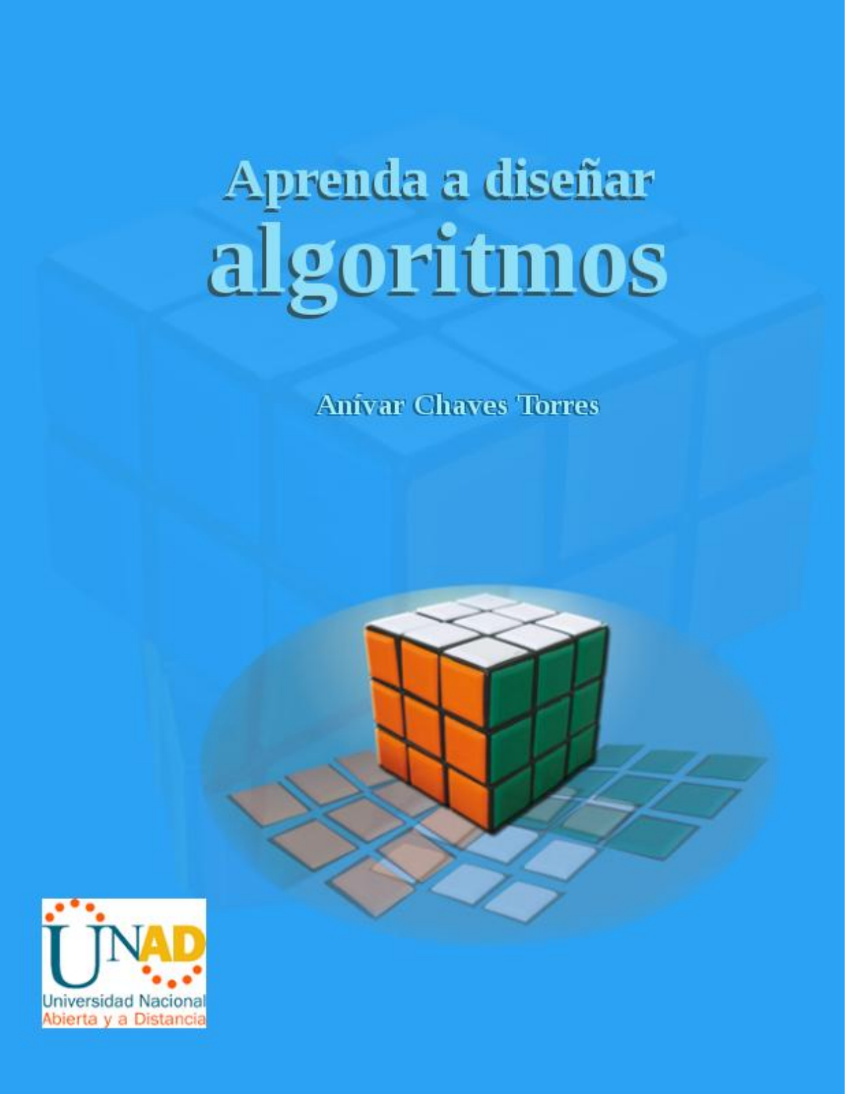 Aprenda a diseñar algoritmos Anívar Chaves Torres Aprenda a Diseñar Algoritmos Autor: Anívar Chaves Torres ISBN: 978-958-651-622-8 Escuela de Ciencias Básicas, Tecnología e Ingeniería ©Editorial Sello Editorial UNAD Universidad Nacional Abierta y a Distancia Calle 14 sur No. 14-23 Bogotá D.C Abril 2017. Esta obra está bajo una licencia Creative Commons - Atribución – No comercial – Sin Derivar 4.0 internacional. https://co.creativecommons.org/?page_id=13. CHAVES TORRES, Anívar. Aprenda a diseñar algoritmos. Bogotá: Universidad Nacional Abierta y a Distancia UNAD, 2017. ISBN: 978-958-651-622-8 Formato: digital Páginas: 321 Datos de catalogación bibliográfica A la sagrada familia, por su comprensión, su apoyo y su confianza. Rector Jaime Alberto Leal Afanador. Vicerrectora Académica y de Investigación Constanza Abadía García. Vicerrector de Medios y Mediaciones Pedagógicas Leonardo Yunda Perlaza. Vicerrector de Desarrollo Regional y Proyección Comunitaria Leonardo Evemeleth Sánchez Torres. Vicerrector de Servicios a Aspirantes, Estudiantes y Egresados Edgar Guillermo Rodríguez Díaz. Vicerrector de Relaciones Internacionales Luigi Humberto López Guzmán. Decana Escuela de Ciencias de la Educación Clara Esperanza Pedraza Goyeneche. Decana Escuela de Ciencias Agrícolas, Pecuarias y del Medio Ambiente Julialba Ángel Osorio. Decano Escuela de Ciencias Básicas, Tecnología e Ingeniería Claudio Camilo González Clavijo. Decana Escuela de Ciencias Sociales, Artes y Humanidades Sandra Milena Morales Mantilla. Decana Escuela de Ciencias Administrativas, Económicas, Contables y de Negocios Sandra Rocío Mondragón. Decana Escuela de Ciencias de la Salud Myriam Leonor Torres Agradecimiento Muchas personas han contribuido de diferentes maneras para que este trabajo pudiera llevarse a buen fin, tanto compañeros docentes como estudiantes que revisaron los temas y los ejercicios, me mostraron algunas inconsistencias y me hicieron importantes observaciones para mejorar el documento; igualmente a los funcionarios de la UNAD que participaron en el proceso de evaluación y publicación. Sin el concurso de todos ustedes no hubiera sido posible publicar este libro. Muchas gracias a todos. CONTENIDO Pág. 1. INTRODUCCIÓN............................................................................................................ 12 1.1 EL COMPUTADOR ....................................................................................................... 12 1.1.1 Componente Físico ................................................................................................... 14 1.1.2 Componente Lógico .................................................................................................. 18 1.2 CONSTRUCCION DE PROGRAMAS........................................................................... 20 1.2.1 Análisis del problema ................................................................................................ 21 1.2.2 Diseño de la solución ................................................................................................ 22 1.2.3 Codificación del programa......................................................................................... 23 1.2.4 Prueba y depuración .................................................................................................23 1.2.5 Documentación ......................................................................................................... 24 1.2.6 Mantenimiento........................................................................................................... 25 2. ELEMENTOS DE PROGRAMACIÓN............................................................................. 26 2.1 TIPOS DE DATOS ........................................................................................................ 26 2.1.1 Datos numéricos ....................................................................................................... 27 2.1.2 Datos alfanuméricos.................................................................................................. 28 2.1.3 Datos lógicos o booleanos ........................................................................................ 28 2.2 VARIABLES Y CONSTANTES...................................................................................... 29 2.2.1 Variables ................................................................................................................... 29 2.2.2 Tipos de variables ..................................................................................................... 31 2.2.3 Declaración de variables ........................................................................................... 33 2.2.4 Asignación de valores ............................................................................................... 34 2.2.5 Constantes ................................................................................................................ 35 2.3 OPERADORES Y EXPRESIONES ............................................................................... 35 2.3.1 Operadores y expresiones aritméticos ...................................................................... 35 2.3.2 Operadores y Expresiones Relacionales .................................................................. 37 2.3.3 Operadores y expresiones lógicos ............................................................................ 38 2.3.4 Jerarquía general de los operadores......................................................................... 40 3. ALGORITMOS ............................................................................................................... 41 3.1 CONCEPTO DE ALGORITMO...................................................................................... 41 3.2 CARACTERÍSTICAS DE UN ALGORITMO .................................................................. 42 3.3 NOTACIONES PARA ALGORITMOS 