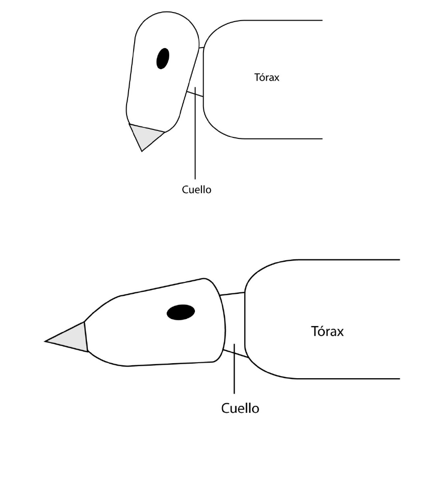 Anatomía de Insectos: Cabeza Hay varios tipos de cabeza, en función de la forma y posición: Ortognata: el eje de la cabeza, es decir, el eje que pasa por el centro de la boca, es perpendicular al eje del cuerpo. Se presenta en animales fitófagos, que comen del suelo y carroñeros. Prognata: la presentan animales predadores. El eje de la boca es paralelo al eje del cuerpo. Opistogmática: la presentan solamente dos tipos de animales fluidófilos, es decir, se alimentan de fluidos. El eje de la cabeza es paralelo al del cuerpo, pero la base se abre hacia atrás, hacia las patas. Veamos ahora con más detalle una cabeza ortognata.