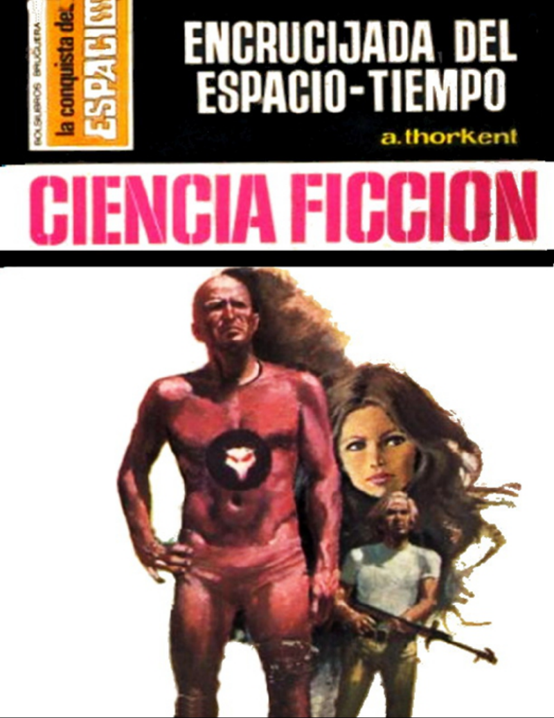 A. THORKENT ENCRUCIJADA DEL ESPACIOTIEMPO LA CONQUISTA DEL ESPACIO nº 133 CAPITULO I El hombre tenía unos cincuenta años, aunque representaba algunos más. Su cabello, totalmente blanco, escaso, caía ralo hasta el cuello. No resultaba su aspecto muy cuidado. Incluso podía aparentar marcado desaliño. Tenía barba de dos días, y aunque no lo sentía, debía tener apetito. Sin embargo, sus labios dibujaban una sonrisa totalmente placentera y en sus ojos brillaban chispas de regocijo. Se llamaba Hans Seaby y sentíase completamente feliz. Estaba sentado en su enorme y bien dotado laboratorio-taller, frente a una serie de complicadas maquinarias, que ofrecían un aspecto que indicaba el resultado de un trabajo astesano más que el logro de un detallado y planificado proyecto. Aquél era el resultado de diez años largos y constantes de trabajo del profesor Seaby. Al fin estaba culminado, probado y garantizado su funcionamiento. Era solamente un prototipo, pero suficiente para convencer con él al más incrédulo de los colegas de Seaby. El profesor se pasó la mano por la poblada cara y pensó que había llegado el momento de regresar al mundo real, abandonar por unos instantes los paisajes de sueños en los que había estado dulcemente sumergido. Por décima vez le volvieron a llamar desde el piso superior. Solamente entonces el profesor se dio cuenta que Malva debía estar impacientándose. Si no contestaba pronto era capaz de bajar y sacarle a rastras del laboratorio, como le había prometido que haría si no se decidía a dejar de ser de una vez un hombre de las cavernas y reintegrarse a la civilización. Seaby tomó el comunicador y dijo: -Ya subo, preciosa, te lo prometo. -Ya estoy harta, viejo -replicó una voz femenina bien modulada-. Puedes quedarte ahí si te satisface. Sólo te llamo para decirte que alguien desea verte. El profesor entornó los ojos. No recibía visitas desde hacía mucho tiempo. ¿Meses o años? No estaba seguro. Además, pocas personas conocían aquel lugar. -¿Quién es. Malva? -Dice llamarse Leo Liddell. ¿Le digo que se vaya? Liddell. Leo Liddell. Era al primero de los incrédulos a quien pensaba llamar y arrojarlo contra aquel montón de máquinas para que se rompiera contra ellas la nariz. Había sido el que más se rió cuando supo lo que Seaby se proponía hacer. Luego, Liddell empezó a trabajar para el Gobierno y no volvieron a verse en muchos años. ¿Cómo había llegado hasta allí? ¿Qué se proponía? No podía haberse enterado de nada en lo que había estado trabajando. -Estoy esperando -dijo Malva de mal humor-. Decídete de una vez, cáspita. -¡Oh, perdona! Dile que espere unos minutos. En seguida subo. Llévale a mi despacho y ponle cerca una botella de escocés. -Calentaré el baño. Porque supongo que no querrás presentarte con esa facha. -Qué tiene mi facha! -gritó Seaby. En seguida comprendió que Malva tenía razón y añadió-: Sí, gracias. Como siempre, tienes razón. -Oírte decir eso bien merece tener que soportar tu mal genio constantemente. Cuando se cortó la comunicación, Seaby gruñó: -Chica tonta... -sonrió y musitó-. Pero no sé qué haría sin ella. Subió los escalones de hierro y cerró cuidadosamente la puerta del laboratorio con llave. Luego se apresuró a entrar en el cuarto de aseo. Ya estaba el baño lleno con agua caliente. Sobre unas perchas, una muda limpia, camisa, corbata y su mejor traje. Seaby volvió a sonreír y empezó a desnudarse. Minutos después salía convertido en otro hombre. Incluso había rejuvenecido unos años. Afuera le esperaba Malva, que sonrió aprobadoramente. -Estás guapísimo, papá -le dijo besándole en la mejilla. -Yo mismo no me reconocí en el espejo, la verdad -asintió Seaby- Incluso siento apetito. -Es lógico. Hace días que no pruebas bocado. Te llevaré café y unos emparedados a tu despacho. No le importará a tu amigo que comas, él tiene bastante con el escocés. Seaby dejó que su hija le corrigiera el nudo de la corbata y comentó: -Leo siempre me pareció una esponja a la hora de beber. Tendrás que buscar otra botella. -Está bien, está bien -apremió ella empujándole por el pasillo-. Ese tipo ya debe estar impaciente. Llegaron hasta la puerta del despacho. Malva continuó caminando. Seaby se quedó con la mano apoyada en el picaporte, observando cómo su hija se alejaba. Malva, desde que salió de la universidad, se convirtió en su ayudante, eficaz y paciente. Soportó sus malos humores, momentos de desesperación y desaliento con increíble constancia. Seaby se preguntó si no había cometido un crimen permitiendo que una chica tan hermosa perdiera dos años de su alegre juventud encerrada en aquella casa aislada en el campo. Decidió que aquella misma noche le plantearía el problema. El trabajo más importante había terminado. Se tomarían unas vacaciones antes de notificar al mundo su descubrimiento. Al pensar en aquello se le planteaba una encrucijada. Había pensado que Leo Liddell, ya que estaba allí, podía ser el primero en conocer el resultado de sus desvelos. Si lo hacía, probablemente no iban a poder disfrutar de las merecidas vacaciones. Además, lo que quería saber era el motivo que había llevado a Leo hasta su escondite. Luego, cuando lo supiese, decidiría si informarle o no en aquel instante. Empujó con decisión la puerta de su despacho. El hombre que estaba sentado en uno de los butacones de cuero, con un vaso de whisky en la mano, se levantó de un salto. Ambos amigos se fundieron en un abrazo, se cruzaron bromas y dieron golpecitos en la espalda. Luego se sentaron y Hans sacó una cigarrera. Leo movió la cabeza negativamente, diciendo: -Prefiero tu magnífico escocés. -Como quieras. Lo siento, pero lo primero que tengo que preguntarte es la causa de tu presencia aquí. -¿Te sorprende mi visita? -Más que nada, cómo pudiste enterarte que vivo en este lugar. -Hace tiempo que lo sé. Un fabricante de material de precisión elec
