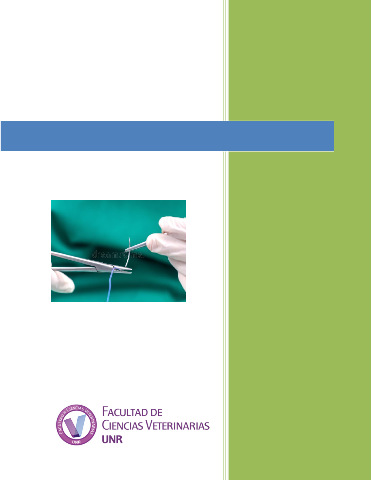 Cátedra de Cirugía General Autores: Hrdalo, J.C.V.; Fiorentini, J.O.; Schiaffi, A.L.; Portillo Olivera, B.S.; Santos. C.A.; Serrano, M.R.; Lardino, G.V.; Baracco, P.A.; Español, N.; Oliva, M. Síntesis: Instrumental básico y materiales de sutura Año Académico 2020 2 Índice: Definición …………………………………………………………………………… 3 Principios para la confección de una sutura …………………………………………… 3 Instrumental Básico para la Síntesis de los Tejidos Blandos Pinza de Mano Izquierda …………………………………………………… 4 Porta-agujas …………………..…………………………………..……………… 4 Tijeras …………………………………………………………………………… 5 Agujas Quirúrgicas …………………………………………………………… 6 Materiales de Sutura …………………………………………………………… 10 Clasificación …………………………………………………………………… 11 Catgut …………………………………………………………… 13 Tendón de Canguro …………………………………………………… 14 Ácido Poliglicólico ……………………………………………….…... 14 Poliglactina 910 ………………………………………………….... 15 Lactomer …………………………………………………………… 16 Gliconato …………………………………………………………… 16 Poligliconato …………………………………………………… 17 Polidioxanona …………………………………………………… 17 Poligrecaprone …………………………………………………… 17 Ciano-acrilato de n-butilo …………………………………………… 18 Monoderm …………………………………………………… 18 Sistema V-Log …………………………………………………… 18 Stratafix™ …………………………………………………… 19 Stratafix™ Spiral …………………………………………………… 19 Lino …………………………………………………………… 20 Algodón ……………………………………………………………. 20 Seda ……………………………………………………………. 21 Crin de Florencia ……………………………………………………. 21 Crin de caballo ……………………………………………………. 21 Acero Quirúrgico ……………………………………………………. 22 Alambre de Aluminio ……………………………………………. 22 Grapas, Agrafes y Clips ……………………………………………. 22 Poliamida ……………………………………………………………. 22 Poliester ………………………………….……………………….... 23 Polibutester ……………………………………………………………. 24 Polipropileno ……………………………………………………………. 24 Bibliografía ……………………………………………………………………………. 25 3 SINTESIS Definición: La síntesis es el conjunto de maniobras quirúrgicas destinadas a unir los tejidos u órganos incididos, restableciendo la continuidad anatómica y funcional de los mismos. En general la esencia de las intervenciones quirúrgicas consiste en “incidir” y “suturar” (abrir y cerrar), por lo que el dominio de las técnicas de sutura y la confección de nudos, el conocimiento profundo de los materiales de sutura y el uso y manejo adecuado del instrumental para síntesis es primordial tanto para el estudiante como para el profesional. Expondremos los conceptos básicos para la confección de las suturas, de manera tal que los mismos acompañen al estudiante durante toda su vida profesional. Algunos podrán decir que no se dedicarán a la cirugía, que solamente practicarán la clínica médica porque no se sienten con la habilidad o no poseen la “manualidad” necesaria para encarar con seriedad los temas quirúrgicos. A éstos debemos mencionarles que aún ejerciendo la clínica, en innumerables oportunidades deberán anestesiar a un determinado paciente y realizar alguna sutura ante un accidente, una herida cortante u otras circunstancias, por lo que necesariamente deberán conocer el tema de las síntesis de los tejidos blandos para poder actuar adecuadamente. Principios para la confección de una sutura: 1.- Utilizar materiales que posean la suficiente resistencia para mantener afrontados e inmóviles los bordes de la herida el tiempo necesario para que se complete el período de cicatrización. 2.- Emplear agujas de sutura que atraviesen fácilmente los tejidos, produciendo el menor daño tisular posible. 3.- Seleccionar el material de sutura en relación al tipo de herida, los tejidos que la sutura abarcará y el grado de tensión al que estará sometida la sutura. Además, deberá considerarse la especie animal ya que algunos materiales son más apropiados que otros para una determinada especie (v.g. catgut para bovinos pero no para equinos). 4.- Deben suturarse siempre tejidos “homólogos”, fascia con fascia, músculo con músculo, peritoneo con peritoneo, piel con piel, etc. Para ello es importante que los tejidos presenten bordes netos a fin de poder identificar adecuadamente los diferentes tipos de tejidos. Si las heridas poseen bordes irregulares, éstos deberán regularizarse antes de iniciar la síntesis. 5.- La hemostasis en una herida a suturar debe ser “perfecta”, ya que si permitimos la formación de un hematoma, la sangre acumulada se podría convertir en un magnífico medio de cultivo para gérmenes oportunistas. 6.- Los labios de una herida quirúrgica suturada debe