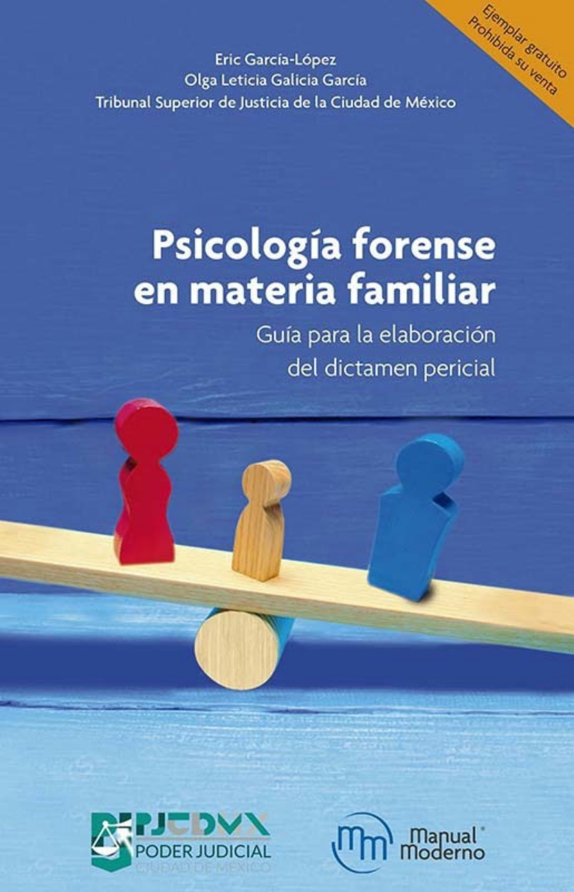 Psicología forense en materia familiar. Guía para la elaboración del dictamen pericial Psicología forense en materia familiar. Guía para la elaboración del dictamen pericial Eric García-López Doctor en Psicología Clínica, Legal y Forense. Periodo docente del doctorado en Neurociencia, Universidad Complutense de Madrid. Posdoctorado en Evolución y Cognición Humana (EvoCog-IFISC-UIB-CONACYT). Ha sido investigador visitante del Instituto Max Planck de Derecho Penal Internacional (Friburgo, Alemania) y profesor titular en la Facultad de Medicina de la Universidad Nacional Autónoma de México. Investigador Titular, Instituto Nacional de Ciencias Penales. Miembro del Sistema Nacional de Investigadores, del Mental Health, Law & Policy Institute de la Universidad Simon Fraser y de la International Association of Forensic Mental Health Services. Olga Leticia Galicia García Maestra en ciencias del comportamiento y Licenciada en psicología con diplomados en psicología criminológica, alienación parental, evaluación neuropsicológica y neuropsicología clínica. Miembro fundador de la Asociación Mexicana de Justicia Terapéutica, (AMTJ), miembro de la Asociación Iberoamericana de Justicia Terapéutica, la Asociación Latinoamericana de Psicología Jurídica y Forense, y la Sociedad Mexicana de Psicología. Presidenta del Colegio Mexicano de Profesionistas de la Psicología. Perito en psicología, integrante de las listas de auxiliares del Tribunal Superior de Justicia de la Ciudad de México desde hace 25 años. Tribunal Superior de Justicia de la Ciudad de México Editor responsable: Lic. Georgina Moreno Zarco Editorial El Manual Moderno Nos interesa su opinión, comuníquese con nosotros: Editorial El Manual Moderno S.A. de C.V. Av. Sonora 206, Col. Hipódromo, Alcaldía Cuauhtémoc, 06100, Ciudad de México, México (52-55) 52-65-11-00 info@manualmoderno.com quejas@manualmoderno.com Psicología forense en materia familiar. Guía para la elaboración del dictamen pericial D.R. © 2019 por Eric García-López, Olga Leticia Galicia García, Tribunal Superior de Justicia de la Ciudad de México. Editorial El Manual Moderno S.A. de C.V. ISBN: 978-607-448-822-7 versión electrónica Miembro de la Cámara Nacional de la Industria Editorial Mexicana, Reg. núm. 39 Todos los derechos reservados. Ninguna parte de esta publicación puede ser reproducida, almacenada o transmitida sin permiso previo por escrito de la Editorial. DISTRIBUCIÓN GRATUITA / PROHIBIDA SU VENTA Para mayor información sobre Catálogo de producto Novedades Instrumentos de evaluación en línea y más www.manualmoderno.com http://www.manualmoderno.com/ Director editorial: Dr. José Luis Morales Saavedra Editora de desarrollo: Lic. Tania Flor García San Juan Diseño de portada: DG. Elena Frausto Sánchez Carta del editor Editorial El Manual Moderno se complace en presentar la obra Psicología forense en materia familiar. Guía para la elaboración del dictamen pericial, la cual es resultado de una colaboración profesional e institucional de los psicólogos forenses del Tribunal Superior de Justicia de la Ciudad de México, el reconocido autor Eric García-López y la maestra Olga Leticia Galicia García. Esta guía pretende ser un puente de comunicación práctico y un punto de reunión inicial para peritos psicólogos y otras áreas afines a la salud mental que ejercen la psicopatología forense en México, en donde se proponen lineamientos de evaluación psicológica familiar, abiertos al diálogo interdisciplinario, inicialmente en el del derecho de familia, pero extensivo progresivamente a otros ámbitos del derecho penal, civil, laboral, etc. En Manual Moderno el ejercicio de Responsabilidad Social Empresarial ha definido su forma de trabajo y, de manera paulatina, se construye y reafirma mediante prácticas ejemplares e iniciativas innovadoras con impacto en diferentes: ética y transparencia empresarial, cuidado del medio ambiente, calidad de vida en la empresa y vinculación con la comunidad. Con la distribución de esta guía, la editorial lleva a la práctica sus valores empresariales pero, sobre todo, busca que los profesionales de la psicología y la salud mental puedan acudir ante los tribunales de justicia con una guía de actuación basada en la experiencia y el conocimiento forense, tanto de quienes pertenecen al público como del privado. Especial reconocimiento y agradecimiento a las personas y empresas que colaboraron en este proyecto a través de sus aportaciones profesionales en formación (Arturo Castro García), diseño de portada (Elena Frausto Sánchez), elaboración de índice (Leticia García García), aportación de papel, impresión y encuadernación (ADISA S.A. de C.V.). Colaboradores del Tribunal Superior de Justicia de la Ciudad de México Sergio Aguilar Álvarez Bay. Maestría y especialidad en Psicoterapia Racional Emotiva Conductual, Instituto de Terapia Racional Emotiva de México. Maestría en Alta Dirección de Empresas (MEDE), Instituto Panamericano en Alta Dirección de Empresa (IPADE Business School). Licenciado en Filosofía, Universidad Panamericana y coautor del libro “Límites de la argumentación ética en Aristóteles”. Director de Evaluación e Intervención Psicológica para Apoyo Judicial del Tribunal Superior de Justicia de la Ciudad de México. Profesor titular en el Programa de Maestría, Instituto de Terapia Racional Emotiva de México. Karen Eugenia Cintra Buenrostro. Licenciatura en Psicología, Universidad Autónoma de México. Maestría en Criminología, Instituto de Formación Profesional de la Procuraduría de Justicia de la Ciudad de México. Perito en Psicología del Tribunal Superior de Justicia de la Ciudad de México desde hace 8 años. Daniel Estrada Silva. Licenciatura en Psicología, Universidad Nacional Autónoma de México. Psicólogo Especializado, adscrito a la Subdirección de Evaluación Psicológica de la Coordinación de Intervención 