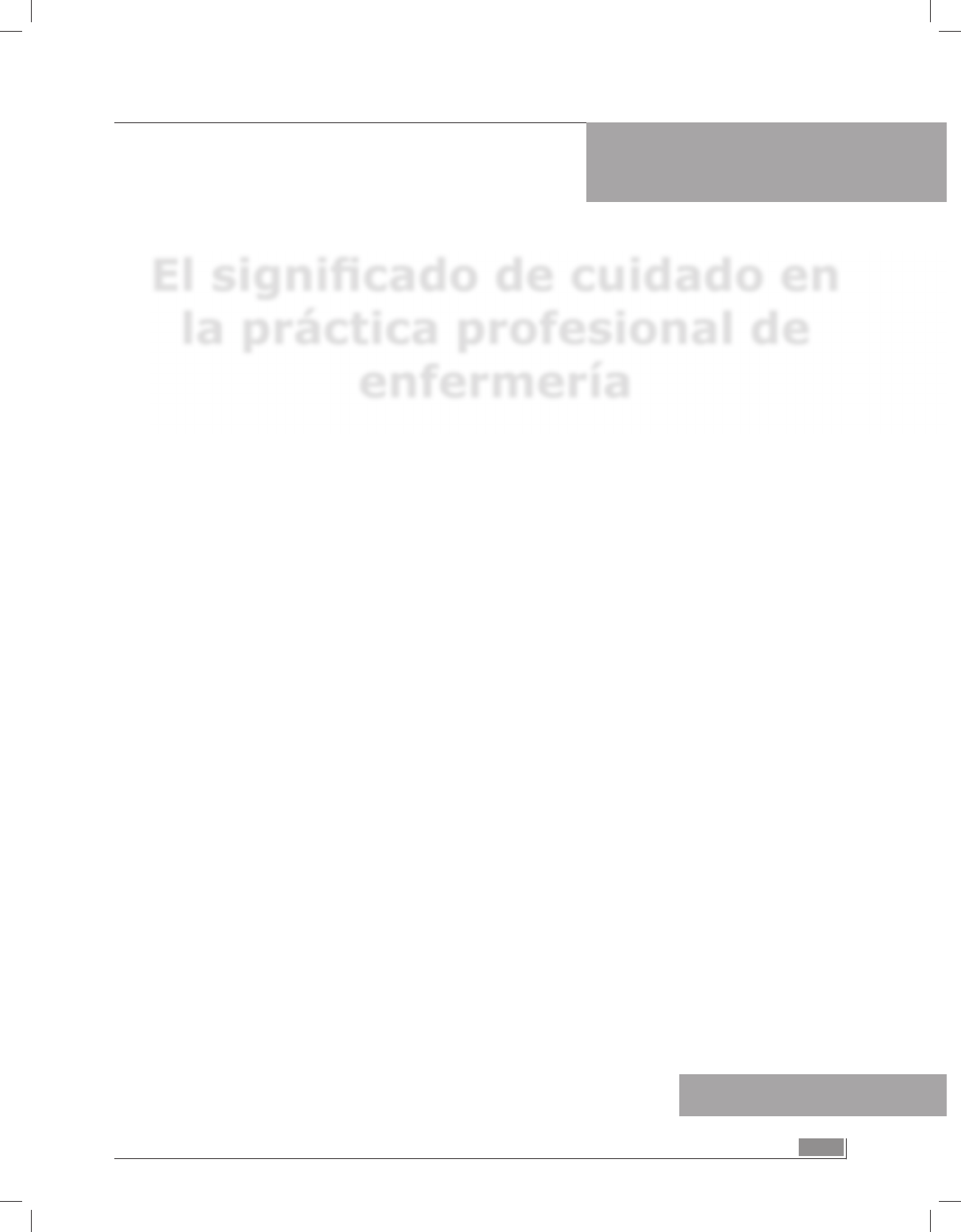 127 Francisco Javier Báez-Hernández1 Vianet Nava-Navarro2 Leticia Ramos-Cedeño3 Ofelia M. Medina-López4 El signifi cado de cuidado en la práctica profesional de enfermería 1 Maestro en Ciencias de Enfermería. Benemérita Universidad Autónoma de Puebla, Puebla, México. jav007@hotmail.com 2 Maestra en Ciencias de Enfermería. Benemérita Universidad Autónoma de Puebla. Puebla, México. vianetnn28@hotmail.com 3 Maestra en Ciencias de Enfermería. Puebla, México. ciately_tapia@hotmail.com 4 Maestra en Ciencias de Enfermería. Benemérita Universidad Autónoma de Puebla. Puebla, México. ofeliamedina77@hotmail.com Recibido: 1 de septiembre de 2008 Aceptado: 17 de junio de 2009 RESUMEN Cuidar es una actividad humana que se define como una relación y un proceso cuyo objetivo va más allá de la enfermedad. Este artículo presenta los resultados de un estudio cualitativo de tipo descriptivo interpretativo, realizado con el propósito de comprender cómo repre- sentan los profesionales de enfermería su quehacer profesional. Método: se realizó, un muestreo teórico. Los participantes del estudio fueron profesionales de enfermería, un hombre y seis mujeres, con un promedio de edad de 30 años. Los datos se recolectaron a través de diario de campo y siete entrevistas semiestructuradas aplicadas de manera individual y a profundidad, las cuales fueron grabadas y transcritas en su totalidad; se realizaron tablas y esquemas de codificación abierta y axial que sirvieron para el análisis de los datos, me- diante el marco interpretativo de las representaciones sociales de Moscovicci, que contempla cuatro dimensiones: información, imagen, actitud y opinión. Resultados: se encontraron seis categorías periféricas que forman el significado de cuidado: factores, implicaciones, contribuciones, aplicaciones, creencias y actitudes. Conclusiones: el cuidado de enfermería envuelve y comparte la experiencia humana a través de una relación transpersonal y de respeto. PALABRAS CLAVE Cuidado, enfermería, análisis cualitativo. (Fuente: DeCs, BIREME). The Signifi cance of Care in Professional Nursing Practice ABSTRACT Care is a human activity defined as a relationship and a process with an objective that goes beyond illness. This article presents the results of a descriptive-interpretive qualitative study conducted to understand how nurses portray their professional practice. Method: A theoretical sampling was done. The participants in the study were nurses (one man and six women). Their average age was 30. The data were collected through a field diary and seven semi-structured interviews were conducted individually and in depth. The interviews were taped and transcribed in their entirety. Tables were developed, along with open axial codification schemes that were used to analyze the data. This was done with the interpretive framework of Moscovicci social representations, which considers four dimensions: informa- tion, image, attitude and opinion. Results: The study reveals six peripheral categories that form the significance of care: factors, impli- cations, contributions, applications, beliefs and attitudes. Conclusions: Nursing care is enveloped by and shares the human experience through a transpersonal relationship marked by respect. KEY WORDS Care, nursing, qualitative analysis. (Source: DeCs, BIREME). AÑO 9 - VOL. 9 Nº 2 - CHÍA, COLOMBIA - AGOSTO 2009 127-134 128 AÑO 9 - VOL. 9 Nº 2 - CHÍA, COLOMBIA - AGOSTO 2009 AQUICHAN - ISSN 1657-5997 O signifi cado do cuidar na prática profi ssional de enfermagem RESUMO O cuidar é uma atividade humana que é, ao mesmo tempo, uma relação e um processo cujo objetivo está mais para lá da doença. Neste artigo apresentam-se os resultados de um estudo qualitativo do tipo descritivo-interpretativo, levado a cabo a fim de compreender como representam os profissionais de enfermagem a sua tarefa profissional. Método: aplicou-se uma amostragem teórica. No estudo participaram seis homens e uma mulher, profissionais de enfermagem, com idade média de 30 anos. Para recolher os dados, utilizaram- se diário de campo e sete entrevistas semi-estruturadas aplicadas individualmente e em profundidade, gravadas e transcritas na sua totalidade. Foram elaboradas tabelas e diagramas de codificação aberta e axial, que serviram na análise dos dados, aplicando o marco interpretativo das representações sociais de Moscovicci, que consta de quatro dimensões: informação, imagem, atitude e opinião. Resul- tados: foram achadas seis categorias periféricas que conformam o significado do cuidar: fatores, implicações, contribuições, aplicações, crenças e atitudes. Conclusões: o cuidar de Enfermagem implica e comparte a experiência humana através de uma relação trans-pessoal e de respeito. PALAVRAS-CHAVE Cuidar, enfermagem, análise qualitativo. (Fonte: DeCs, BIREME). 129 El significado de cuidado en la práctica profesional de enfermería Francisco Javier Báez-Hernández, Vianet Nava-Navarro, Leticia Ramos-Cedeño, Ofelia M. Medina-López Introducción Cuidar es una actividad humana que se define como una relación y un proceso cuyo objetivo va más allá de la enfermedad (1). En enfermería, el cuidado se considera como la esencia de la disciplina que implica no solamente al receptor, sino también a la enfermera como transmisora de él (2). Según Watson, el cuidado se manifiesta en la práctica inter- personal, que tiene como finalidad promover la salud y el crecimiento de la persona (3). Swanson, a través de la teoría de los cuidados, propone cinco procesos básicos se- cuenciales (conocimiento, estar con, hacer por, posibilitar y mantener las creencias), en los que se hace evidente el cuidado de enfermería, que se caracteriza por la actitud filo- sófica de la enfermera, la comprensión, los mensajes verbales y no verbales, las acciones terapéuticas y las consecuencias de los cuidados (4). Dichos conceptos permiten reflexionar acerca de la 