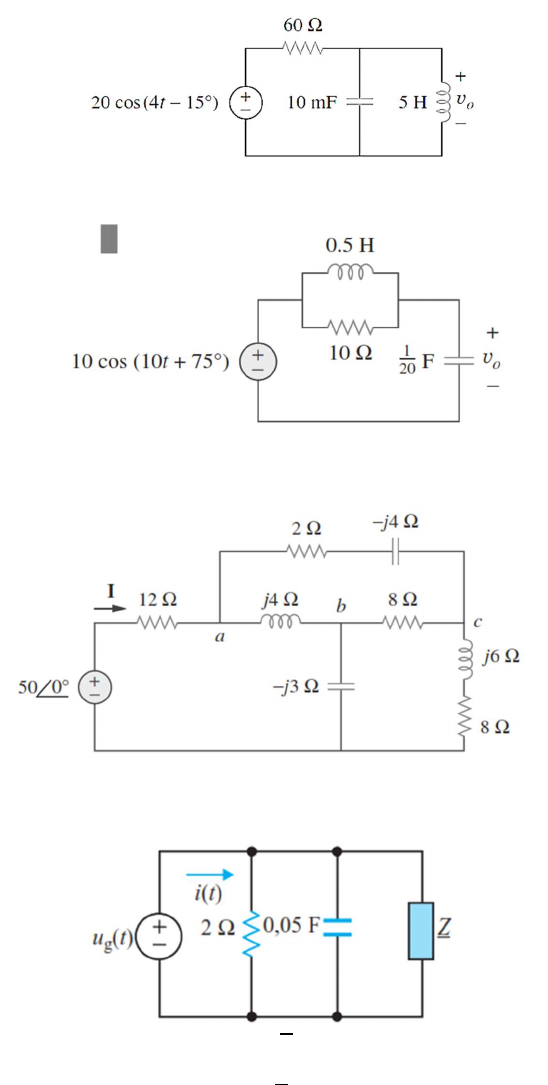 PARCIAL I CIRCUITOS II INGENIERIA ELECTROMECANICA 1. Determine Vo en el circuito de la figura. 2. Calcule en el circuito de la figura. 3. Halle la corriente I en el circuito de la figura 4. En el circuito de la Figura, Calcular el valor de la impedancia Z. 𝑉𝑔 = 10√2 cos 10𝑡 𝐼𝑡 = 10√2 cos 10𝑡