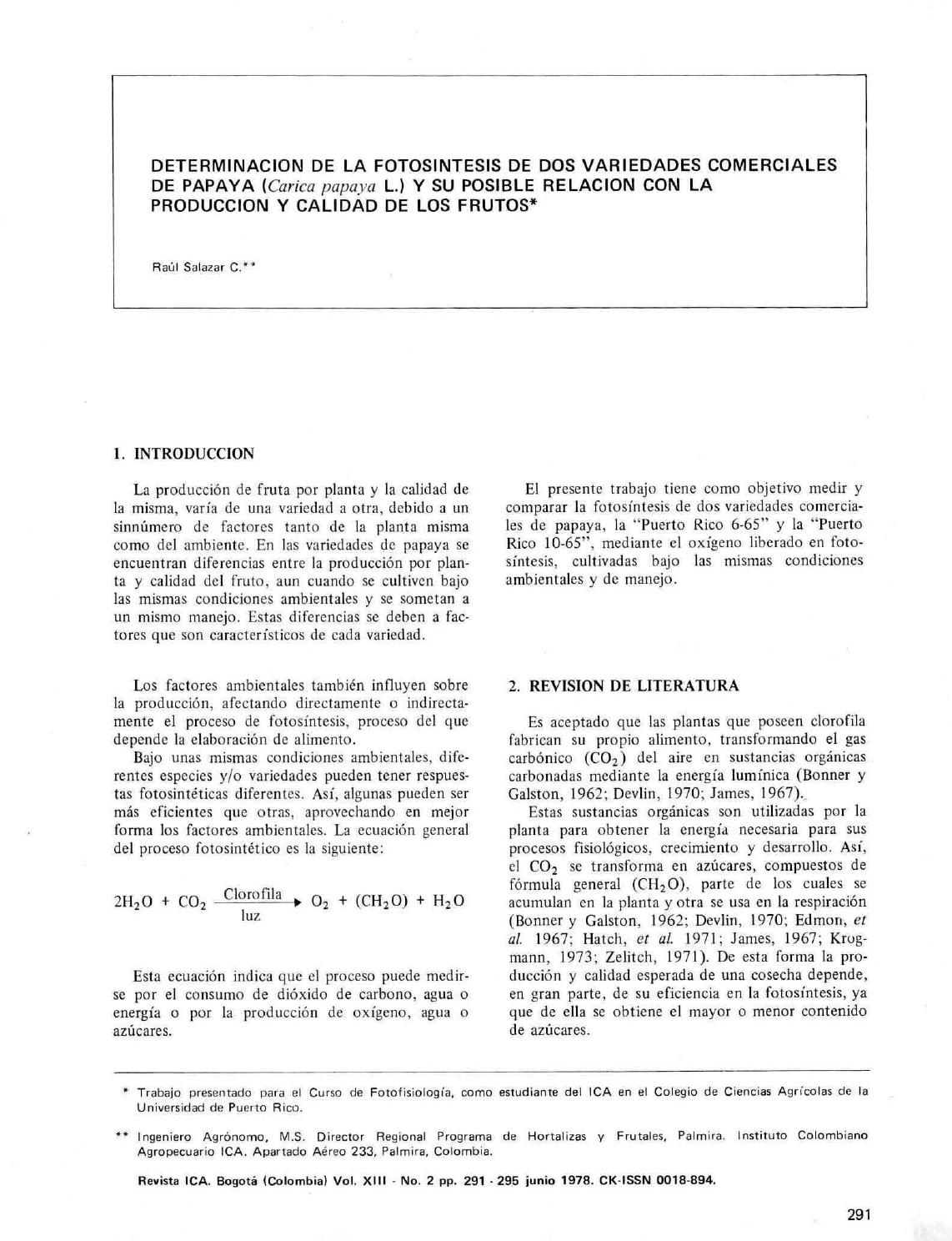Revista ICA. Bogota (Colombia) Vol. XIII - No. 2 pp. 291 - 295 junio 1978. CK-ISSN 0018-894.