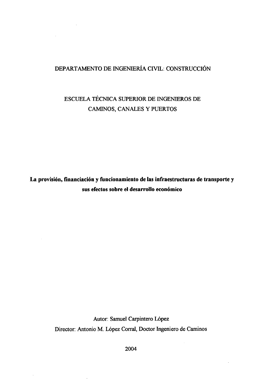 La provisión, fínancíación y funcionamiento de las infraestructuras de transporte y