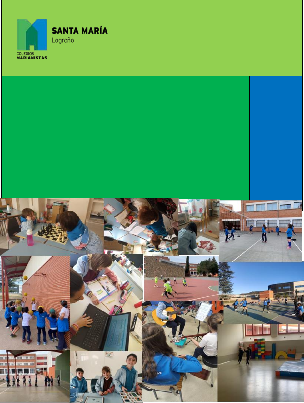 ACTIVI ACTIVIDADES EXTRACURRICULARES SANTA MARÍA / MARIANISTAS LOGROÑO CURSO 2023/2024 1 INTRODUCCIÓN Y FUNCIONAMIENTO 00 EDUCACIÓN PRIMARIA 02 PASTORAL 04 2 INTRODUCCIÓN Nuestro propósito desde el área de actividades extracurriculares es ofrecer a nuestros alumnos un lugar donde poder identificar sus pasiones y transformarlas en talento, donde encontrar la motivación necesaria para abordar su vida con ilusión y decisión y llegar a ser así seres transformadores del mundo en que vivimos. Queremos que nuestras actividades sean actividades de calidad que les ayuden a configurar identidad, guiados así por nuestro maravilloso equipo de educadores docentes especializado y motivado. Desde el área de actividades extracurriculares pretendemos ser un entorno innovador y optimizado para el desarrollo del talento y de las personas. Ponemos en el centro el desarrollo personal del alumno/a y queremos ser un marco de confianza para nuestras familias puedan conciliar su vida profesional y familiar mientras el alumno/a se desarrolla como persona. Reforzamos y apoyamos la propuesta de centro de educar desde el arte y posicionar las disciplinas artísticas en el plano de la educación, así como poner en funcionamiento su mente con el ajedrez y la robótica. El deporte escolar marianista es una actividad organizada y practicada por escolares fuera del horario lectivo que complementa la educación del aula y contribuye a la formación integral de los alumnos. Es responsable de multitud de beneficios para nuestros alumnos (ayuda al desarrollo y crecimiento armónico de manera integral, constituye un ámbito de encuentro y convivencia, contribuye a la socialización de las personas, promueve la creación de hábitos saludables, etc.). SUS PRINCIPIOS FUNDAMENTALES son: 1. Un deporte como medio para la educación de actitudes y hábitos. 2. Un deporte adecuado al desarrollo evolutivo del niño. 3. Un deporte que ayuda a construir la comunidad colegial. 4. Un deporte con deportistas que se esfuerzan para competir sanamente. 3 5. Un deporte compatible con otras actividades. 6. Un deporte con entrenadores comprometidos y conscientes de su misión educativa. 7. Un deporte que integra a los Padres en la acción educativa de sus hijos. FUNCIONAMIENTO Estas actividades extracurriculares son organizadas por el centro y por empresas externas, en estrecha colaboración con el colegio. Nos gustaría recordaros: Los responsables de las actividades cumplen los requisitos que establecen las Políticas Provinciales Marianistas en cuanto a protección del menor. Los alumnos deberán permanecer inscritos en las actividades, antes de cualquier cambio, durante al menos un trimestre. Las altas y bajas de las extracurriculares se harán mediante correo electrónico al coordinador hasta el día 25 (fecha tope) del mes anterior a la misma, ya que se realizará el cobro trimestral a principio de mes. Si no se cumple este requisito, no tendrá derecho al reembolso de la actividad. Los grupos de actividades se abrirán siempre respetando los mínimos por grupo establecidos de cada deporte y actividad. En caso de no llegar a ese número mínimo, el colegio se reserva el derecho a no sacar adelante esa actividad informando debidamente a las familias afectadas. La cuota de la actividad en la que esté inscrito el alumno se mantendrá igual durante todos los meses de servicio. Las actividades deportivas que necesiten seguro de su Federación correspondiente se deberán abonar aparte. Los días de lluvia en los que no se pueda entrenar en las pistas exteriores, los alumnos serán distribuidos a sitios cubiertos: aulas, gimnasios y porches. 4 En los grupos de extracurriculares deportivas se respetará la organización por categorías: Infantil 1º y 2º EP 3º y 4º EP 5º y 6º EP ESO Organización y gestión de cobro: El próximo curso 23/24 los cobros se realizarán con una frecuencia trimestral anticipada en cada mes, excepto octubre y mayo que serán mensuales como meses de “prueba” de la actividad, quedando los cobros trimestrales de la siguiente manera: NOVIEMBRE-DICIEMBRE-ENERO (se abonará en noviembre) FEBRERO-MARZO-ABRIL (se abonará en febrero) Para cualquier consulta relacionada con las actividades extraescolares podéis contactar con el responsable de Actividades Extracurriculares enviando un correo electr6nico a deportes.logrono@marianistas.org mailto:deportes.logrono@marianistas.org 5 02 EDUCACIÓN PRIMARIA 6 ACTIVIDADES DEPORTIVAS VOLEIBOL Este deporte de equipo es especialmente adecuado para que todos los niños participen y se integren en el grupo. Es una disciplina muy divertida en la que se trabaja la rapidez y control físico y mental, para resolver jugadas en grupo y de forma inmediata. Desarrolla las habilidades psicomotrices básicas, la resistencia, la potencia, la coordinación y la fuerza, para hacer frente a saques, recepciones, ataques, pases y defensas. Fomenta el espíritu de equipo, la autocrítica y el afán de superación, ya que implica una actitud de autoanálisis para aprender de los errores y disfrutar de los logros en grupo. Supone actitudes de respeto y responsabilidad hacia las normas, hacia los compañeros y hacia el contrario. La estrategia del juego implica a todos los jugadores, que deben cumplir su papel para lograr el objetivo común. Educa en el deporte como alternativa sana de ocio, que libera la mente y trabaja el cuerpo, además de suponer una oportunidad para conocer a otros niños y hacer nuevas amistades. CARACTERÍSTICAS DE LA ACTIVIDAD Horario - lunes y miércoles de 16.45 a 17.45 Número de alumnos – mínimo 8 Cursos – 1º a 6º EP Grupos – 1º y 2º/ 3º y 4º /5º y 6º Cuota - 32€ alumno/mes 7 BALONCESTO Esta actividad no solo les ayuda a mejorar su desarrollo motriz, sino que también les enseña lo importante de valores como el esfuerzo, la dedicación y la constancia. Al igual que las actividades en equipo, los alumnos aprenderán a trabajar en equipo y a