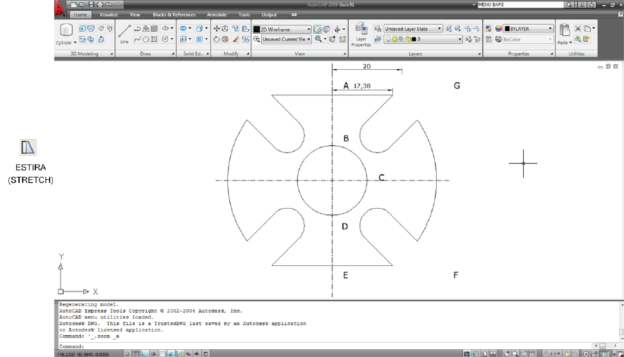 Escribir ES (S) y oprimir INTRO (ENTER) para activar el comando ESTIRA
