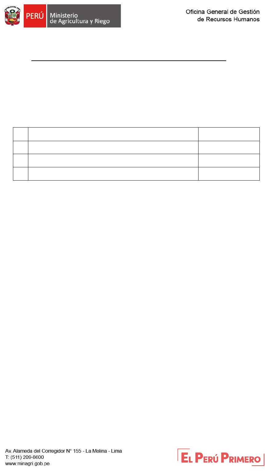 “Decenio de la Igualdad de Oportunidades para Mujeres y Hombres” “Año del Diálogo y la Reconciliación Nacional” COMUNICADO Nº 001-2018-MINAGRI-SG-OGGRH-COMCAS1 PROCESO CAS Nº 225-2018-MINAGRI-OGGRH "CONTRATACION ADMINISTRATIVA DE SERVICIOS DE UNA ASISTENTA SOCIAL" PUBLICACION DE LOS RESULTADOS PRELIMINARES Los miembros del comité acuerdan declarar DESIERTO el presente proceso debido a que los postulantes no cumplieron con los requisitos mínimos en las bases Primer Comité de Selección CAS R.D. Nº 0796-2018-MINAGRI-OGGRH Fecha: 30 de noviembre de 2018 N° APELLIDOS Y NOMBRES CALIFICACION 1 OYAGUE HUAMAN DORA YSABEL NO APTO 2 ALTAMIRANO DE LA SERNA MARIA CONCEPCION NO APTO 3 RODRIGUEZ PARI RAQUEL MERCEDES NO APTO