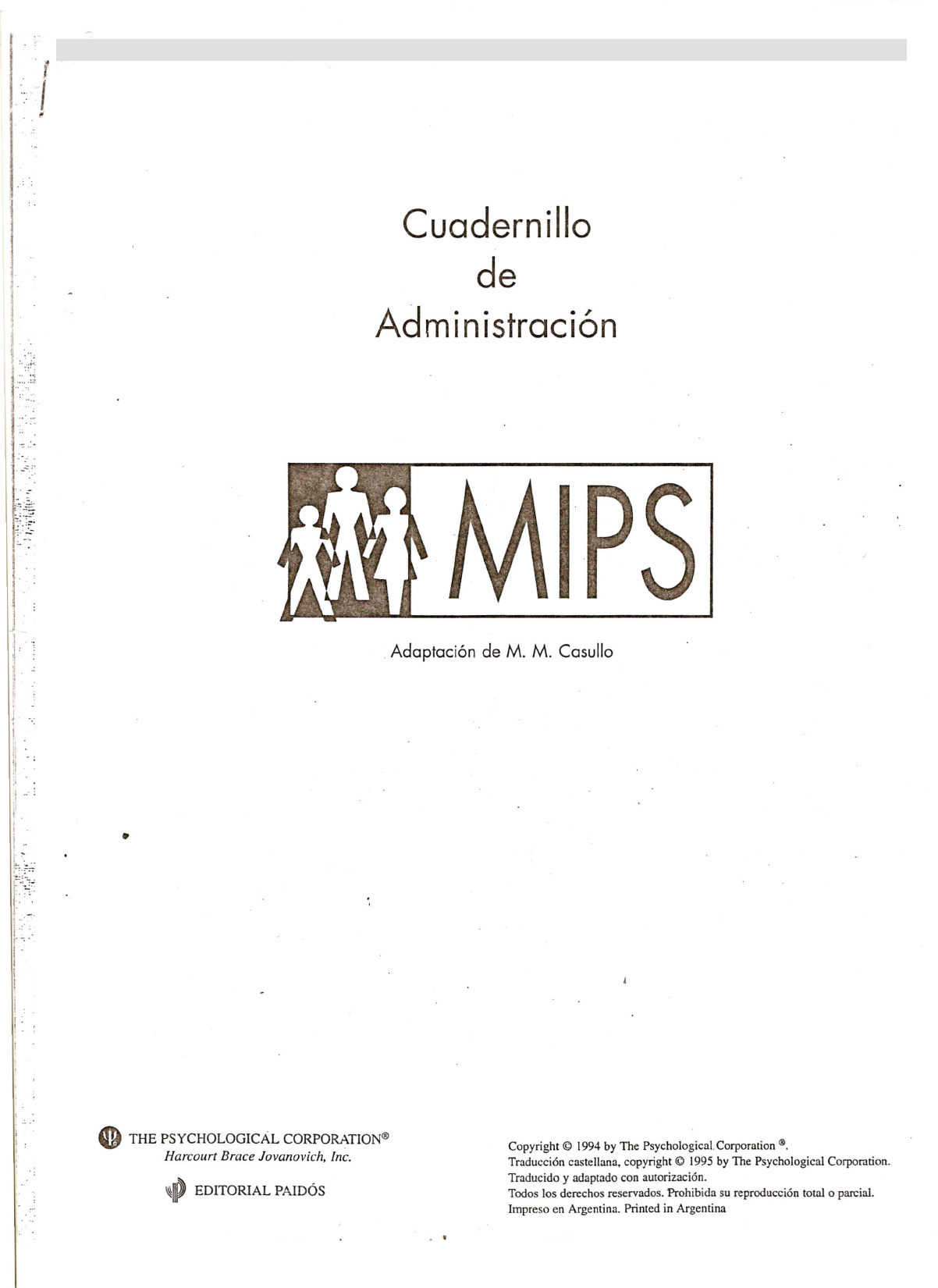 Millon, T. (1997). El inventario de Estilos de Personalidad. MIPS. Cuadernillo de administración.