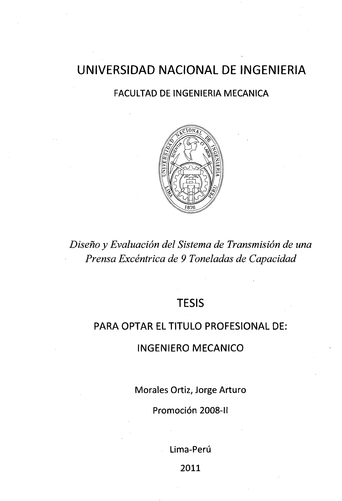 Universidad: Universidad Nacional de Ingeniería, Facultad de Ingeniería Mecánica