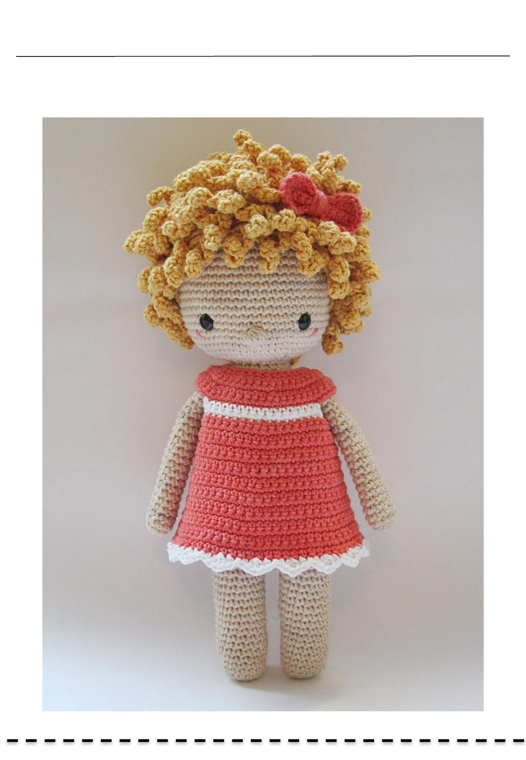 Coralie se empieza a tejer desde las piernitas hacia la cabeza… Luego le harás el cabello y el vestido…