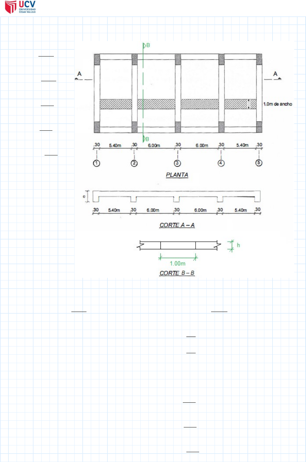 CONCRETO ARMADO II LOSA MACIZA EN UNA DIRECCION - E060 2022-1 Diseñar la losa de concreto construida monolíticamente con las vigas que le sirven de apoyo, la losa servirá como playa de estacionamiento. s/c=500kg/m2 ≔f'c ⋅210 ―― kgf cm 2 ≔fy ⋅4200 ―― kgf cm 2 ≔wsc ⋅500 ―― kgf m2 ≔γc 2400 ―― kgf m3 ≔wacab 100 ―― kgf m2 ≔ln1 5.40 m ≔ln2 6.00 m ≔ln3 6.00 m ≔ln4 5.40 m h ≔b 100 cm Predimensionamiento: Como: >wsc 350 ―― kgf cm2 ≔lnmax max ⎛⎝ ,,,ln1 ln2 ln3 ln4⎞⎠ ––> ≔h =-―― lnmax 21 0.05 m 0.236 m Tramos exteriores: ≔ln max ⎛⎝ ,ln1 ln4⎞⎠ ––> ≔h =― ln 24 0.225 m Tramos interiores: ≔ln max ⎛⎝ ,ln2 ln3⎞⎠ ––> ≔h =― ln 28 0.214 m se adopta: ≔h 25 cm Metrado de cargas: Carga muerta (D) Losa maciza: ≔wd1 =⋅⋅γc h b 600 ―― kgf m Acabados: ≔wd2 =⋅wacab b 100 ―― kgf m ≔wd =+wd1 wd2 700 ―― kgf m Carga viva (L) Ing. Marco Muñiz CONCRETO ARMADO II LOSA MACIZA EN UNA DIRECCION - E060 2022-1≔wd =+wd1 wd2 700 ―― kgf m Carga viva (L) Sobrecarga: ≔wl =⋅wsc b 500 ―― kgf m Carga ultima (U) ≔wu =+⋅1.5 wd ⋅1.8 wl 1950 ―― kgf m Análisis estructural: Método de los coeficientes del ACI: 1. Contar con dos o mas tramos: se tiene dos tramos ––> ok 2. Relación entre dos luces contiguos =――――― max ⎛⎝ ,ln1 ln2⎞⎠ min ⎛⎝ ,ln1 ln2⎞⎠ 1.111 < 1.20 ––> ok 3. Cargas uniformemente distribuidas si ––> ok 4. Carga: <wl ⋅3 wd ––> ok Distribución de coeficientes ACI Ing. Marco Muñiz CONCRETO ARMADO II LOSA MACIZA EN UNA DIRECCION - E060 2022-1 (1) (2) (3) (4) (5) Momentos positivos: ≔M12 =――― ⋅wu ln1 2 14 406157.143 ⋅kgf cm ≔M45 =M12 406157.143 ⋅kgf cm ≔M23 =――― ⋅wu ln2 2 16 438750 ⋅kgf cm ≔M34 =M23 438750 ⋅kgf cm Momentos negativos: ≔M1 =――― ⋅wu ln1 2 24 236925 ⋅kgf cm ≔M5 =M1 236925 ⋅kgf cm ≔M2i =⋅―― wu 10 ⎛ ⎜ ⎝ ――― +ln1 ln2 2 ⎞ ⎟ ⎠ 2 633555 ⋅kgf cm ≔M4d =M2i 633555 ⋅kgf cm ≔M2d =⋅―― wu 11 ⎛ ⎜ ⎝ ――― +ln1 ln2 2 ⎞ ⎟ ⎠ 2 575959.091 ⋅kgf cm ≔M4i =M2d 575959.091 ⋅kgf cm ≔M3i =⋅―― wu 11 ⎛ ⎜ ⎝ ――― +ln2 ln3 2 ⎞ ⎟ ⎠ 2 638181.818 ⋅kgf cm ≔M3d =M3i 638181.818 ⋅kgf cm Cálculo del refuerzo de acero por flexión ≔ϕ 0.90 =b 100 cm Se asume el peralte efectivo: ≔d =-h 3 cm 22 cm Momento ultimo en el centro de la luz: ≔Mu =M12 406157.143 ⋅kgf cm Cuantía de refuerzo requerido: ≔ρ =――――――――――――― -⋅ϕ fy ‾‾‾‾‾‾‾‾‾‾‾‾‾‾‾‾‾‾‾‾‾‾‾‾ -⎛⎝ ⋅ϕ fy⎞⎠ 2 ⋅⋅4 ⎛ ⎜ ⎜⎝ ――― ⋅ϕ fy 2 ⋅1.70 f'c ⎞ ⎟ ⎟⎠ ⎛ ⎜ ⎝ ―― Mu ⋅b d2 ⎞ ⎟ ⎠ ⋅2 ⎛ ⎜ ⎜⎝ ――― ⋅ϕ fy 2 ⋅1.70 f'c ⎞ ⎟ ⎟⎠ 0.0023 Cuantía mínima: Ing. Marco Muñiz CONCRETO ARMADO II LOSA MACIZA EN UNA DIRECCION - E060 2022-1 ≔ρ =――――――――――――― -⋅ϕ fy ‾‾‾‾‾‾‾‾‾‾‾‾‾‾‾‾‾‾‾‾‾‾‾‾ -⎛⎝ ⋅ϕ fy⎞⎠ 2 ⋅⋅4 ⎛ ⎜ ⎜⎝ ――― ⋅ϕ fy 2 ⋅1.70 f'c ⎞ ⎟ ⎟⎠ ⎛ ⎜ ⎝ ―― Mu ⋅b d2 ⎞ ⎟ ⎠ ⋅2 ⎛ ⎜ ⎜⎝ ――― ⋅ϕ fy 2 ⋅1.70 f'c ⎞ ⎟ ⎟⎠ 0.0023 Cuantía mínima: ≔ρsmin 0.0018 Cuantía máxima recomendada ( ):ρst ≔β1 = ‖ ‖ ‖ ‖ ‖ ‖ ‖ ‖ ‖ ‖ ‖ ‖ ‖ | | | | | | | | | | | | | | | | | | | | | | | | || if else ≤f'c ⋅280 ―― kgf cm 2 ‖ ‖ 0.85 ‖ ‖ ‖ ‖ ‖ ‖‖ max ⎛ ⎜ ⎜ ⎜ ⎜ ⎝ ,0.65 -0.85 ⋅0.05 ⎛ ⎜ ⎜ ⎜ ⎜ ⎝ ――――― -f'c ⋅280 ―― kgf cm 2 ⋅70 ―― kgf cm 2 ⎞ ⎟ ⎟ ⎟ ⎟ ⎠ ⎞ ⎟ ⎟ ⎟ ⎟ ⎠ 0.85 =ρsmax ⋅0.75 ρb ≔Es ⋅⋅2 106 ―― kgf cm 2 ≔ρsmax =⋅⋅0.75 ―――― ⋅⋅0.85 f'c β1 fy ⎛ ⎜ ⎜ ⎜⎝ ―――― 0.003 +0.003 ― fy Es ⎞ ⎟ ⎟ ⎟⎠ 0.0159 Verificación de la cuantía calculada :((ρ)) ≔ρs =‖ ‖ ‖ ‖ ‖ ‖ ‖ ‖ ‖ ‖ ‖ ‖‖ | | | | | | | | | | | || | | | | | | | | | | | | if else ≤≤ρsmin ρ ρsmax ‖ ‖ρ ‖ ‖ ‖ ‖ ‖ ‖ ‖‖ ‖ ‖ ‖ ‖ ‖ ‖ ‖ | | | | | | | | | | | | || if else <ρ ρsmin ‖ ‖ρsmin ‖ ‖ρsmax 0.0023 —> ≔As =⋅⋅ρs b d 5.019 cm 2 Área de refuerzo colocado : ≔cm2 cm 2 ≔qm ―― kgf m ≔ db Asb qsb ⎡ ⎢ ⎢ ⎢⎣ ⎤ ⎥ ⎥ ⎥⎦ Rebar: 4 (1/2) =Asb 1.29 cm 2 espaciamiento: ≔s =⋅―― Asb As 100 cm 0.257 m ––> ≔s 25 cm ≔Ascoloc =⋅―― Asb s 100 cm 5.16 cm 2 ––> ≔ρscoloc =―― Ascoloc ⋅b d 0.0023 < =ρsmax 0.0159 ok Resumen de diseño por flexión: Ing. Marco Muñiz CONCRETO ARMADO II LOSA MACIZA EN UNA DIRECCION - E060 2022-1 Detalle del refuerzo Ing. Marco Muñiz