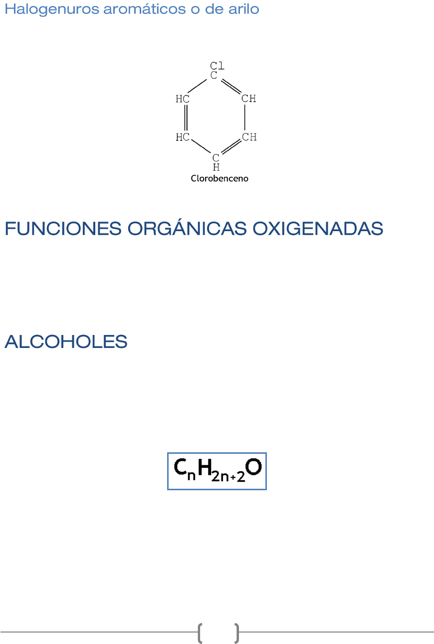 Resumen Química II– Paulina Oriolani 52 Es prácticamente inerte a los reactivos y también aislante eléctrico. Por su resistencia a los agentes químicos se lo emplea en la fabricación de válvulas y materiales que deban estar en contacto con sustancias corrosivas o sometidas a altas temperaturas. Son los compuestos correspondientes a la serie aromática. Ejemplo: Comprenden un grupo de sustancias formadas por carbono e hidrógeno, que constituyen el esqueleto de su estructura y además oxígeno. Los alcoholes son sustancias que tienen un grupo oxhidrilo (OH) unido a un carbono en una cadena hidrocarbonada. Se pueden considerar como derivados de la sustitución, en un hidrocarburo, de un átomo de hidrógeno por un oxhidrilo. Su fórmula general es: Los alcoholes se clasifican en primarios, secundarios y terciarios, si se tiene en cuenta la posición del grupo OH. Cuando este grupo está ubicado en un carbono primario, el alcohol será primario. Resumen Química II– Paulina Oriolani 53 En el alcohol secundario, el oxhidrilo está ubicado en un carbono secundario (unido a dos carbonos). Los alcoholes terciarios contienen el oxhidrilo en un carbono terciario, es decir, unido a otros tres carbonos. Esta situación se presenta únicamente en un carbono ramificado. Cuando la sustitución de un hidrógeno por un oxhidrilo ocurre en una cadena de carbonos no saturados, se los denomina enoles. Nomenclatura de alcoholes: a. La cadena hidrocarbonada más larga que contiene al grupo OH es la principal y sirve de base al nombre. b. En esa cadena se cambia la terminación del nombre del hidrocarburo por sufijo OL. c. La cadena se numera partiendo del extremo más cercano al grupo OH. d. Se nombran las cadenas laterales o ramificaciones, indicando su posición por medio de los números correspondientes. Los primeros de la serie homóloga son líquidos y los alcoholes superiores son sólidos. Son menos densos que el agua y la densidad aumenta con el número de átomos de carbono. Resumen Química II– Paulina Oriolani 54 Los de peso molecular bajo, como el metanol y el etanol, son incoloros, inflamables, solubles en agua y volátiles. A medida que aumenta el peso molecular, crece el punto de ebullición, el punto de fusión y la viscosidad, por otro lado, hay una pérdida de la solubilidad. El átomo de hidrógeno del oxhidrilo de una molécula es atraído por el átomo de oxígeno de la próxima, pudiendo unirse así muchas moléculas. Las moléculas capaces de formar uniones puente de hidrógeno se atraen entre sí como si fueran pequeños imanes. De este modo se explica el elevado punto de ebullición de los alcoholes, pues para que las moléculas se separen y pasen a la fase gaseosa, parte de la energía calorífica que se les entrega se emplea en la rotura de los puentes de hidrógeno. A medida que aumenta la cadena hidrocarbonada, también aumentan las fuerzas de atracción entre ellas, que llegan a predominar sobre la atracción del grupo oxhidrilo por las moléculas de agua. Los alcoholes muestran entonces menor solubilidad en agua, y llegan a ser totalmente insolubles en el caso de los términos superiores. Las reacciones de la función alcohol pueden deberse a dos razones; a la ruptura del enlace O―H o a la ruptura del enlace C―OH. a. Ruptura del enlace O―H 1. El hidrógeno del grupo oxhidrilo de un alcohol primario puede ser reemplazado por métales alcalinos (Na o K), formando un alcóxido y desprendiendo hidrógeno; el alcohol se comporta como un ácido: Los alcoholes primarios presentan más reactividad frente a los metales alcalinos que los secundarios. A su vez, éstos son más reactivos que los terciarios. Resumen Química II– Paulina Oriolani 55 2. Los alcoholes reaccionan con los ácidos orgánicos, originando esteres. En esta reacción intervienen ácidos inorgánicos fuertes como catalizadores. Es una reacción reversible: b. Ruptura del enlace C―OH 1. Los alcoholes en presencia de halogenuros de hidrógeno forman halogenuros de alquilo: Cuando se emplea HCl se necesita la presencia de un catalizador (ZnCl 2 ), mientras que con el HBr la reacción es más directa. El orden de reactividad de los hidrácidos es el siguiente: HI>HBr>HCl Los alcoholes terciarios son más reactivos que los secundarios, y éstos, a su vez, más que los primarios. 2. Por eliminación de agua, los alcoholes dan lugar a la formación de alquenos o éteres. Si se trata un alcohol usando ácido sulfúrico concentrado, que actúa como catalizador, a una temperatura aproximada de 180ºC se produce la siguiente reacción que forma un alqueno: Resumen Química II– Paulina Oriolani 56 Si la temperatura permanece en 140ºC, se elimina una molécula de agua de dos moléculas de alcohol, obteniéndose un éter. El agente deshidratante empleado es el ácido sulfúrico: Los alcoholes sometidos a la acción de agentes oxidantes suaves producen reacciones que permiten diferenciar los alcoholes primarios, secundarios y terciarios sobre la base de producto formado. Los reactivos usados como agentes oxidantes son la solución diluida de permanganato de potasio (KMnO 4 ) y la mezcla sulfocrómica (ácido sulfúrico concentrado y bicromato de potasio disuelto en agua destilada). I. Oxidación de alcoholes primarios Los alcoholes primarios, en condiciones muy controladas (llamadas así porque sólo afectan al grupo funcional), dan lugar a la formación de aldehídos del mismo número de átomos de carbono: Esta reacción puede interpretarse como un proceso de deshidrogenación, porque el oxidante quitó dos átomos de hidrógeno. Resumen Química II– Paulina Oriolani 57 II. Oxidación de alcoholes secundarios Los alcoholes secundarios producen cetonas de igual número de átomos de carbono, en presencia de oxidantes: III. Oxidación de alcoholes terciarios Los alcoholes terciarios presentan dificultad para oxidarse, en medio ácido se deshidratan, transformándose en alquenos, que a su vez se oxidan con 