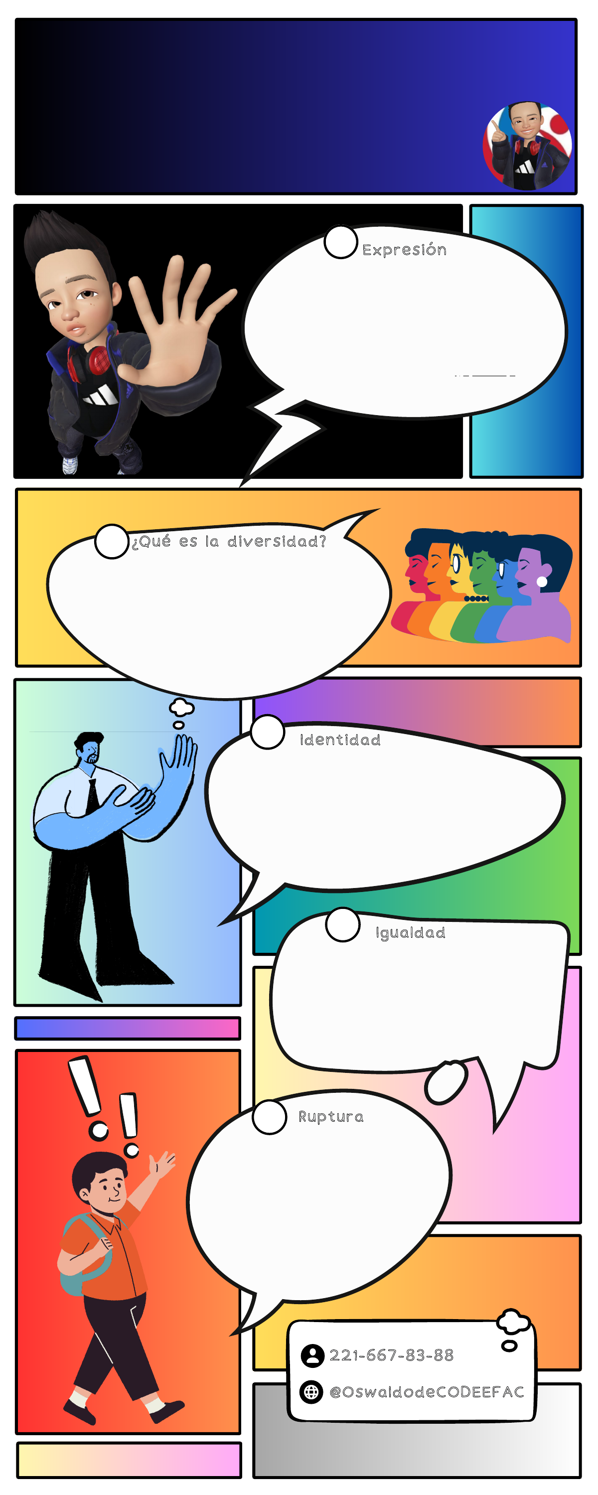 01 02 03 04 RupturaRuptura05 Se trata de cómo hacer compatible la igualdad de todos ante la educación. “La diversidad es expresión de libertad y se encarna jurídicamente en el derecho a la diferencia. Las sociedades abiertas y democráticas la protegen y la cultivan”. De acuerdo con el ENEI (pp. 76). DIVERSIDAD 6ª. Sesión del Consejo Técnico Escolar 26 de abril de 2024 ExpresiónExpresión La sensibilidad por la heterogeneidad cultural, en general, es una de las características más relevantes de las discusiones sobre educación. ¿Qué es la diversidad?¿Qué es la diversidad? El derecho al reconocimiento de la identidad cultural de aquellos que la sientan como tal, trastoca el edificio de ideas y de prácticas más asentadas en el discurrir de los modernos sistemas escolares. Diversidad significa ruptura o atemperación de la homogeneización que una forma monolítica de entender el universalismo cultural ha llevado consigo. IgualdadIgualdad 221-667-83-88221-667-83-88 @OswaldodeCODEEFAC@OswaldodeCODEEFAC IdentidadIdentidad ¿Tienes preguntas? Estrategia Nacional de Educación Inclusiva | SITEAL. (s. f.). https://siteal.iiep.unesco.org/bdnp/3495/estrategia- nacional-educacion-inclusiva https://www.youtube.com/watch?v=cQWPWSY-VhQ&t=2s