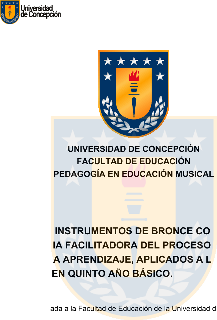1 UNIVERSIDAD DE CONCEPCIÓN FACULTAD DE EDUCACIÓN PEDAGOGÍA EN EDUCACIÓN MUSICAL Título: LOS INSTRUMENTOS DE BRONCE COMO ESTRATEGIA FACILITADORA DEL PROCESO ENSEÑANZA APRENDIZAJE, APLICADOS A LOS PLANES DE ARTES EN QUINTO AÑO BÁSICO. Tesis presentada a la Facultad de Educación de la Universidad de Concepción para optar al grado académico de licenciado en educación. Por : Sr. Fabián Alexis Molina Salinas. Profesor Guía : Mg. Sr. Fernando Lillo Moscoso Concepción, Chile, Mayo 2022 2 Se autoriza la reproducción total o parcial, con fines académicos, por cualquier medio o procedimiento, incluyendo la cita bibliográfica del documento. Dedicado a mi padre Florencio Molina, a quien honro con este trabajo y quien desde el cielo celebra conmigo. Te amo padre. 3 Índice Índice........................................................................................................... 2 Reflexión………………………………………………………………………... 4 Agradecimientos………………………………………………………………… 5 Dedicatoria………………………………………………………………………. 6 Conceptos Claves........................................................................................ 7 Abstract....................................................................................................... 8 Introducción................................................................................................. 10 CAPITULO I PLANTEAMIENTO DEL PROBLEMA.................................. 12 Idea de investigación ….............................................................................. 13 Pregunta de Investigación........................................................................... 14 Objetivos..................................................................................................... 15 Justificación del estudio.............................................................................. 16 CAPÍTULO II MARCO TEÓRICO.............................................................. 17 Teoría cognitivista del Aprendizaje........................................................... 18 La psicología y la música…………………………........................................ 22 Neurociencia y la música............................................................................ 39 CAPÍTULO III METODOLOGÍA …..………………………………………….. 44 Ejes temáticos del proceso enseñanza- aprendizaje……………..………………………………………………………… 47 Eje I Escuchar y apreciar……………………………..……………………....... 50 Contenido ……………………………………………….. Eje II Interpretar y crear…………………….…………………………………… 66 Contenido (Rítmica y Nemotécnia)…………………………………………….. 75 4 Eje III Reflexionar y contextualizar……………………………………………. 88 Contenido. CAPÍTULO IV ANÁLISIS……………………………………………………… 93 Resultados………………………………………………………………………. 95 Tablas de comparación………………………………………………………... 97 CAPÍTULO V CONCLUSIONES…………………………………………….. 98 Consideraciones Finales………………………………………………………. 98 Proyecciones …………………………………………………………………….99 ANEXOS……………………………………………………………………….. 100 Bibliografía…………………………………………………………………….... 100 Linkografía …………………………………………………………………… . 101 5 Agradecimientos. Doy gracias a Dios por el regalo de la música, a mis padres y mi familia su apoyo incondicional. También agradezco a mis profesores su guía y enseñanza en todo mi proceso formativo, y por supuesto a la comisión evaluadora por acompañarme en el final de este proceso. 6 Reflexión. Muchas son las investigaciones que hablan de la importancia de desarrollar la práctica docente integrando diversas estrategias de aprendizaje en el proceso cognitivo de los alumnos, en donde sugieren al docente buscar alternativas novedosas para la selección, organización y distribución del concomimiento escolar permitiendo a sus alumnos alcanzar aprendizajes significativos y superar dificultades. Díaz, B y Hernández, G. (2010) 7 Palabras claves. Ritmo: Aspecto de la música que se ocupa de la organización del tiempo. Como tal, es una función primeramente de los sonidos y silencios de los cuales consiste la música. Casi toda la música occidental organiza el tiempo por medio de pulsaciones o compases que ocurren regularmente y que a su vez están arreglados en grupos recurrentes, que consisten en múltiples de 2 o 3 pulsaciones. Pulso: Unidad básica del ritmo en la música. Constante e invariable. Compás: Agrupación matemática del pulso, la cual puede ser de manera binaria (2, 4 u 8 pulsos por compás) o ternaria (3,6 o 9 pulsos por compás). Figuras rítmicas: Símbolos que en la música entregan valores o duraciones de tiempo (pulso). Estos símbolos están relacionados entre sí de acuerdo a la división interna de cada figura, la cual también se utiliza para entender la cifra indicadora. Acento: Tal como en el lenguaje, la música utiliza acentos para expresar diferentes sensaciones, es así como ciertos elementos (en este caso rítmicos) son acentuados para enfatizar ciertos efectos sonoros. A este efecto le llamaremos “Acento Dinámico” y se diferencia del “Acento Métrico” en que este último es determinado de manera natural por la métrica de la pieza musical. Contratiempo: Denominamos