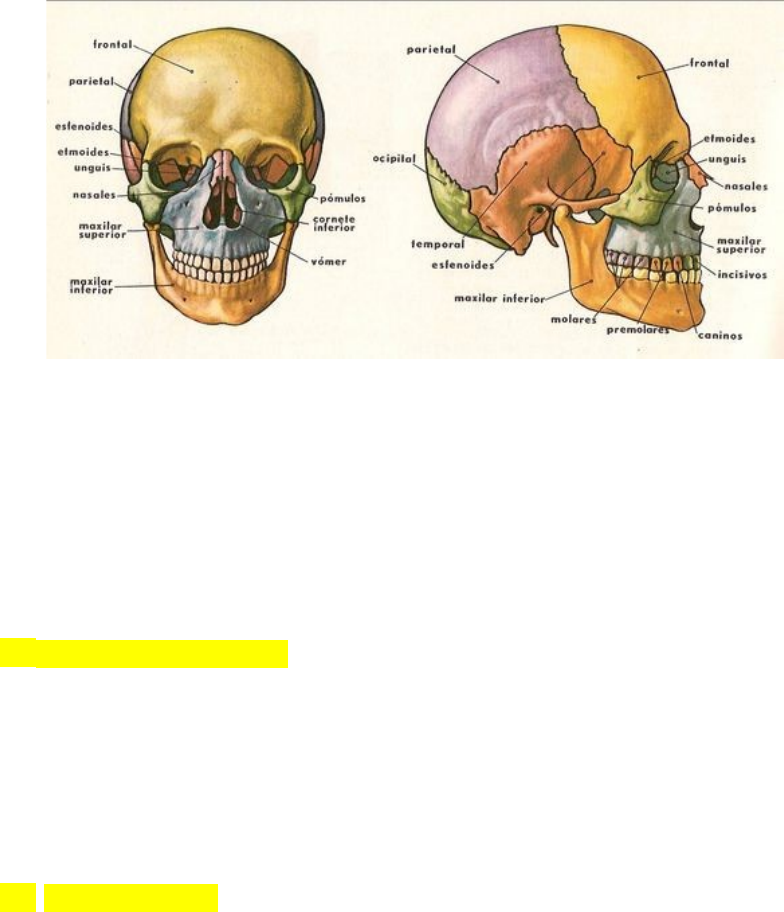 <p>INFORME SOBRE LOS HUESOS DE LA CABEZA Y LA CARA: CONFIGURACIÓN GENERAL DEL CRÁNEO Y CARA</p><p>El cráneo humano es una estructura ósea que desempeña un papel crucial en la protección del cerebro, el soporte de los órganos sensoriales y la formación de la estructura facial. Se divide en dos grandes secciones: el neurocráneo y el viscerocráneo, cada uno con una disposición y función específicas. Este informe detalla los huesos que componen estas secciones y su configuración general.</p><p>· Huesos del Cráneo</p><p>El cráneo está formado por 22 huesos, los cuales se dividen en dos grupos principales: el neurocráneo y el viscerocráneo. Cada uno de estos grupos cumple una función específica en la protección del cerebro y en la formación del rostro.</p><p>· Neurocráneo</p><p>El neurocráneo forma la parte superior y posterior del cráneo y protege el cerebro. Está compuesto por los siguientes huesos:</p><p>· Hueso Frontal: Situado en la parte anterior del cráneo, forma la frente y la parte superior de las órbitas oculares. Está unido a los huesos parietales mediante la sutura coronal.</p><p>· Huesos Parietales (2): Ubicados a ambos lados del cráneo, forman la mayor parte de la bóveda del cráneo. Se articulan con el hueso frontal a través de la sutura coronal, con el hueso occipital mediante la sutura lambdoidea y con el hueso temporal mediante la sutura escamosa.</p><p>· Hueso Occipital: Localizado en la parte posterior e inferior del cráneo. Este hueso alberga el foramen magno, por donde pasa la médula espinal para conectarse con el cerebro</p><p>· Huesos Temporales (2): Se encuentran en los lados del cráneo, cerca de las orejas. Contienen estructuras importantes como el conducto auditivo externo y el proceso mastoides. También forman parte de la articulación temporomandibular.</p><p>· Hueso Esfenoides: Situado en la base del cráneo, entre los huesos del cráneo y la cara. Tiene una forma de murciélago y contribuye a formar parte de la órbita ocular y la cavidad nasal.</p><p>· Hueso Etmoides: Localizado en la parte anterior de la base del cráneo, entre las órbitas. Contribuye a la formación del tabique nasal y la cavidad nasal. Está compuesto por una lámina perpendicular que forma parte del tabique nasal y las láminas cribosas que forman la base del cráneo.</p><p>· Viscerocráneo</p><p>El viscerocráneo forma la estructura facial y está compuesto por los siguientes huesos:</p><p>· Maxilares (2): Forman la mandíbula superior y contribuyen a la formación de la cavidad oral y las órbitas oculares. Contienen los dientes superiores y forman parte del paladar duro.</p><p>· Huesos Cigomáticos (2): Conocidos como huesos de las mejillas, contribuyen a la formación de las órbitas oculares y la prominencia de las mejillas.</p><p>· Huesos Nasales (2): Forman el puente de la nariz. Son pequeños y se encuentran en la parte superior del rostro, entre los huesos frontal y maxilar.</p><p>· Huesos Lagrimales (2): Situados en la parte medial de las órbitas oculares, están implicados en el drenaje de las lágrimas.</p><p>· Huesos Palatinos (2): Ubicados en la parte posterior del paladar duro y en la cavidad nasal, forman parte del paladar y la pared lateral de la cavidad nasal.</p><p>· Cornetes Inferiores (2): También conocidos como conchas nasales inferiores, se encuentran en la cavidad nasal y están implicados en la regulación del flujo de aire y la humidificación del aire inhalado.</p><p>· Vómer: Forma la parte inferior del tabique nasal, separando las dos cavidades nasales.</p><p>· Mandíbula: El hueso más grande de la cara, forma la mandíbula inferior. Es móvil y está conectado al cráneo mediante la articulación temporomandibular.</p><p>· Configuración General del Cráneo</p><p>El cráneo presenta una configuración compleja que proporciona protección y soporte. Se organiza en dos partes principales:</p><p>· Neurocráneo: Protege el cerebro y está diseñado para soportar las fuerzas que se transmiten durante el impacto. Su estructura ósea es robusta y contiene varias suturas que permiten la expansión durante el crecimiento en la infancia.</p><p>· Viscerocráneo: Soporta la estructura facial y facilita funciones esenciales como la masticación y la respiración. La disposición de los huesos faciales también contribuye a la formación de las cavidades nasales y orales, cruciales para la función respiratoria y digestiva.</p><p>· Conclusión</p><p>La configuración del cráneo y la cara está cuidadosamente adaptada para cumplir con múltiples funciones esenciales en el cuerpo humano. La disposición de los huesos del neurocráneo y el viscerocráneo permite la protección del cerebro, el soporte de los órganos sensoriales y la formación de una estructura facial que facilita funciones vitales como la masticación y la comunicación. La anatomía del cráneo refleja una evolución compleja que ha optimizado estas funciones a lo largo del tiempo.</p><p>Este informe proporciona una visión general detallada de los huesos que componen el cráneo y la cara, su disposición y funciones, destacando la importancia de su configuración para el funcionamiento general del cuerpo humano.</p><p>image1.png</p>