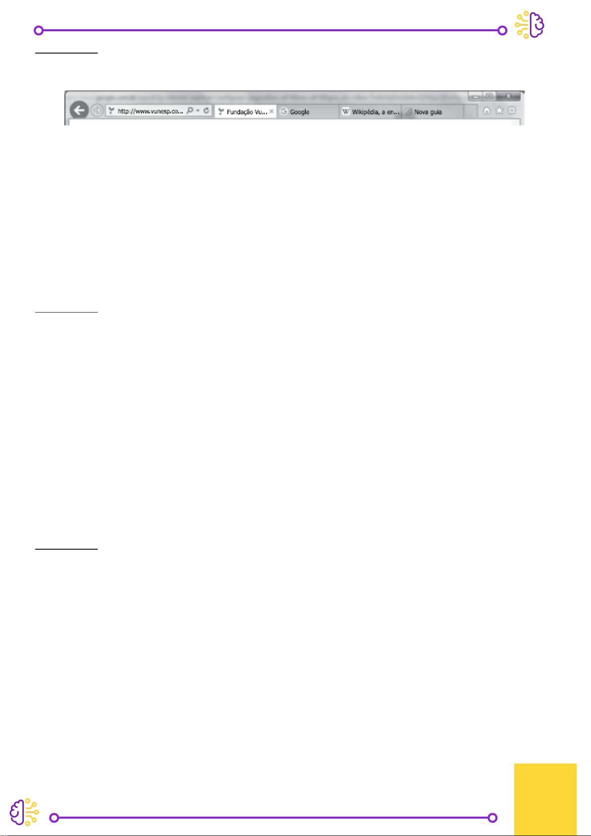 91 Questão 231: VUNESP - Aux Leg (CM Guarat.)/CM Guaratinguetá/2016 Observe a imagem a seguir, retirada do Internet Explorer 11, no MS-Windows 7, em sua configuração padrão. De acordo com a imagem, é possível verificar que existem a) 5 janelas. b) 4 abas. c) 4 janelas. d) 3 abas. e) 3 janelas. Questão 232: CESPE - Tec Ge (CPRM)/CPRM/Hidrologia/2016 Assinale a opção correta acerca de ferramentas de navegação na Internet. a) O Internet Explorer permite que o usuário altere a forma de visualização das páginas, como, por exemplo, a posição de textos e de imagens. b) No Internet Explorer, o menu Favoritos permite o armazenamento de endereços de sítios preferidos, de modo a facilitar novos acessos com um clique apenas, não havendo a necessidade de digitar novamente esses endereços. c) O bloqueador de pop-ups faz que imagens e animações que ficam aparecendo na tela sejam fixadas e não se movimentem, para não incomodar a leitura. d) Páginas da Internet acessadas não podem ser salvas no computador: seu conteúdo é de propriedade exclusiva do criador da página. e) No Internet Explorer, é possível excluir o histórico de navegação, o que impedirá o acesso a sítios já visitados. Questão 233: VUNESP - Ass (AMLURB)/AMLURB SP/Gestão de Políticas Públicas/2016 Durante a navegação pela internet, é muito comum realizar download de arquivos. Ao navegar na internet por meio do Internet Explorer 11, em sua configuração padrão, o atalho CTRL + ____ permite abrir uma janela para visualizar os downloads efetuados. Assinale a alternativa que preenche corretamente a lacuna do enunciado. a) J b) H c) S d) A e) F Licenciado para - sara aparecida de souza consoli - 33544593874 - Protegido por Eduzz.com