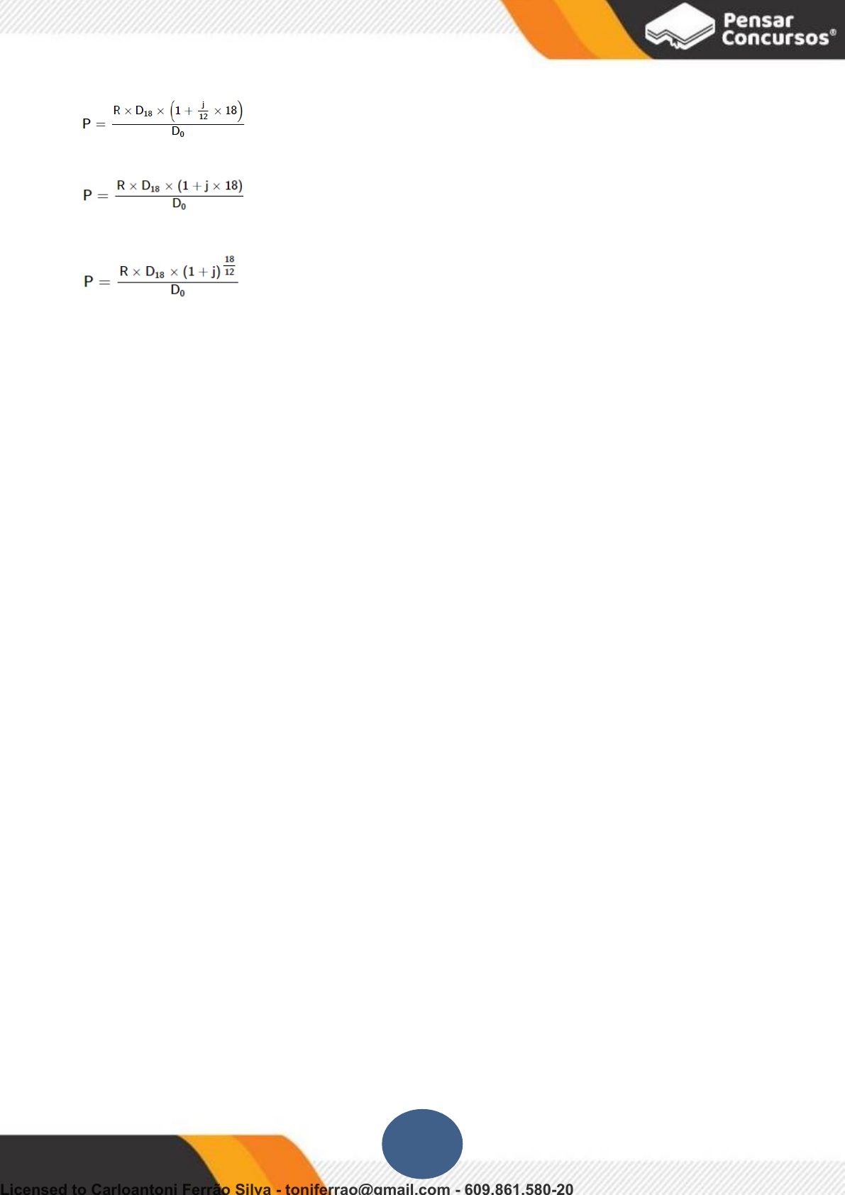 c) d) e) Questão 34: FGV - Ana Gest (COMPESA)/COMPESA/Administrador/2018 José Paulo, estudante de Administração, é convidado para investir em um negócio de criptomoedas, pelo período de dois anos, prometendo uma remuneração mensal de 2,25%, pelo regime de juros simples. Após aplicar a quantia de R$ 550,00, no início de 2018, José Paulo retira, ao final de 2019, R$ 833,00, valor considerado incorreto pelo estudante. Em relação ao fato ocorrido, evidencia-se que o valor retirado está a) compatível com o combinado. b) R$ 15,00 acima do combinado. c) R$ 5,00 abaixo do combinado. d) R$ 10,00 abaixo do combinado. e) R$ 14,00 abaixo do combinado. Questão 35: VUNESP - Tec Leg (CMSJC)/CM SJC/2018 Antonia fez uma aplicação a juros simples, por um período de um ano e meio, e a razão entre o montante dessa aplicação e o capital aplicado foi 23202320. Sabendo que o valor dos juros dessa aplicação foi de R$ 750,00, o valor do capital aplicado e a taxa de juros simples anual equivalente a essa aplicação foram, correta e respectivamente. a) R$ 5.000,00 e 10% b) R$ 5.000,00 e 12% c) R$ 5.500,00 e 12,5% d) R$ 6.000,00 e 10% e) R$ 6.000,00 e 12% 154 Licensed to Carloantoni Ferrão Silva - toniferrao@gmail.com - 609.861.580-20