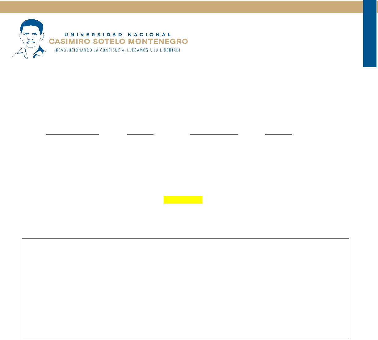 Taller de Lectura Comprensiva Guía de ejercitación: Integrantes: Alba Estela Lazo López 25128621 Deyanira Patricia Trejos Ortíz 25127381 Karelin Ruiz Baltodano 25128651 Maurelly Svetlana Herrera Jiménez, 25127381 Fecha: 24 de mayo 2025 Grupo: PS - 315 Carrera: Psicología I año Turno: Sabatino Estimada/o estudiante, a continuación se presenta una guía de comprensión lectora que tiene como objetivo ayudarte a identificar la idea principal en diversos textos. Lee atentamente cada una de las instrucciones y responde según lo solicitado. · En el caso de que la pregunta contenga alternativa o el ejercicio te solicite un subrayado, debes responder utilizando el “Color del resaltado del texto” de tono amarillo presente en la barra de herramientas de Word. Actividad de inicio: Lee atentamente el siguiente texto El gran auge de las bicicletas como medio de transporte también ha ido acompañado con una alarmante alza en los robos. Es por eso, que Andrés Roi, Cristóbal Cabello y Juan José Monsalve de la Universidad Adolfo Ibáñez decidieron crear un innovador prototipo que busca disminuir en gran parte este tipo de delitos. Se trata de "Yerka Project", una bicicleta que gracias a su diseño único puede ser utilizada como un candado. Para ello, el tubo diagonal de su chasis se divide en dos, se dobla y se une nuevamente con el sillín, que también es desmontable. De esta forma, cualquier intento de robo queda descartado, ya que es necesario desarmar la estructura y el vehículo queda inutilizable. Lo mejor es que no es llamativa y mantiene un estilo clásico típicos de las bicicletas de ciudad. Además, según sus creadores el proceso de desarme toma menos de 20 segundos. ¿Cuál de los siguientes enunciados podría ser un título para el texto citado? a) El gran auge de la bicicleta como medio de transporte b) Una bicicleta imposible de robar c) “Yerka proyect” una bicicleta clásica d) El mejor invento de la Universidad Adolfo Ibáñez Aprendamos a identificar el tema del texto ¿Lograste identificar la respuesta correcta? Esta era la alternativa “B”. En el ejercicio anterior, se nos solicitaba identificar el tema del texto pero, ¿cómo es posible hacerlo? La palabra texto proviene del latín: textus cuyo significado es “tejer, trenza, entrelazar”. Efectivamente, el texto es como un tejido, ya que al igual que este posee un hilo conductor en torno al cual, poco a poco, se va urdiendo la idea que el autor quiere plasmar. Así, el hilo conductor es el tema que se aborda y, es en torno a este, que se irán entretejiendo todas las ideas del texto. TEMA = HILO CONDUCTOR Para poder determinar el tema de un texto, es muy importante formular algunas preguntas claves respecto a él. Para saber cuál es el tema debes preguntar ¿De qué trata el texto? Del mismo modo para desentrañar las ideas principales debes realizar la siguiente interrogante: ¿Qué se dice sobre aquello que se habla? Es importante saber que cuando hablamos de tema nos estamos refiriendo a la idea global del texto, es decir, a todo el texto, y cuando hablamos de idea principal nos referimos a la idea local de este, esto es, a una parte del texto. Ahora estás preparada/o para responder el tema del texto anterior: ¿De qué hablaba? : La bicicleta como medio de transporte A continuación desentraña la idea principal de cada uno de los párrafos del texto citado. Recuerda que al leerlos debes preguntar qué se está diciendo sobre el tema. Párrafo 1: Aumento de robos de bicicletas y motivación para crear una solución Párrafo 2: Descripción del YERKA PROJECT y sus diseños con candado Párrafo 3: Ventajas del diseño discreto y rapidez en el desarme Además existen claves textuales que nos indicarán tanto el tema como la idea principal: Las claves textuales evidencian que el texto siempre mantiene el mismo tema y progresivamente se aporta nueva información acerca de él. Es decir, existe una progresión temática. A partir de esta podemos inferir el tema del texto. La correferencia consiste en establecer vínculos entre diversos elementos de un enunciado o de un texto, indicando igualdad en la referencia de dos o más elementos. Por ejemplo, en el texto anterior la palabra “vehículo” sustituye a la palabra “bicicleta”. Así, cuando en un texto se utilizan diversos términos o expresiones para referirse a un mismo elemento, todos estos términos o expresiones serían correferentes entre sí. El gran auge de las bicicletas como medio de transporte también ha ido acompañado con una alarmante alza en los robos. Es por eso, que Andrés Roi, Cristóbal Cabello y Juan José Monsalvede la Universidad Adolfo Ibáñez decidieron crear un innovador prototipo que busca disminuir en gran parte este tipo de delitos. Se trata de "Yerka Project", una bicicleta que gracias a su diseño único puede ser utilizada como un candado. Para ello, el tubo diagonal de su chasis se divide en dos, se dobla y se une nuevamente con el sillín, que también es desmontable. De esta forma, cualquier intento de robo queda descartado, ya que es necesario desarmar la estructura y el vehículo queda inutilizable. Lo mejor es que no es llamativa y mantiene un estilo clásico típicos de las bicicletas de ciudad. Además, según sus creadores el proceso de desarme toma menos de 20 segundos. Estrategia para identificar el tema y la idea principal · Leer de manera atenta y concentrada el texto. · Identificar qué nos solicita la pregunta, si se refiere al tema o a la idea principal. · Realizar la pregunta clave. En el caso del tema: ¿de qué se trata el texto? En el caso de la idea principal ¿qué se dice sobre aquello que se habla? · Buscar las claves textuales que nos permitan inferir el tema y la idea principal del texto. · Responder la pregunta incorporando todos los elementos ya señalados. Ejercicios de desarrollo Lee atentamente los siguientes textos e identifica el tema y la idea principal. Debes subrayar las 