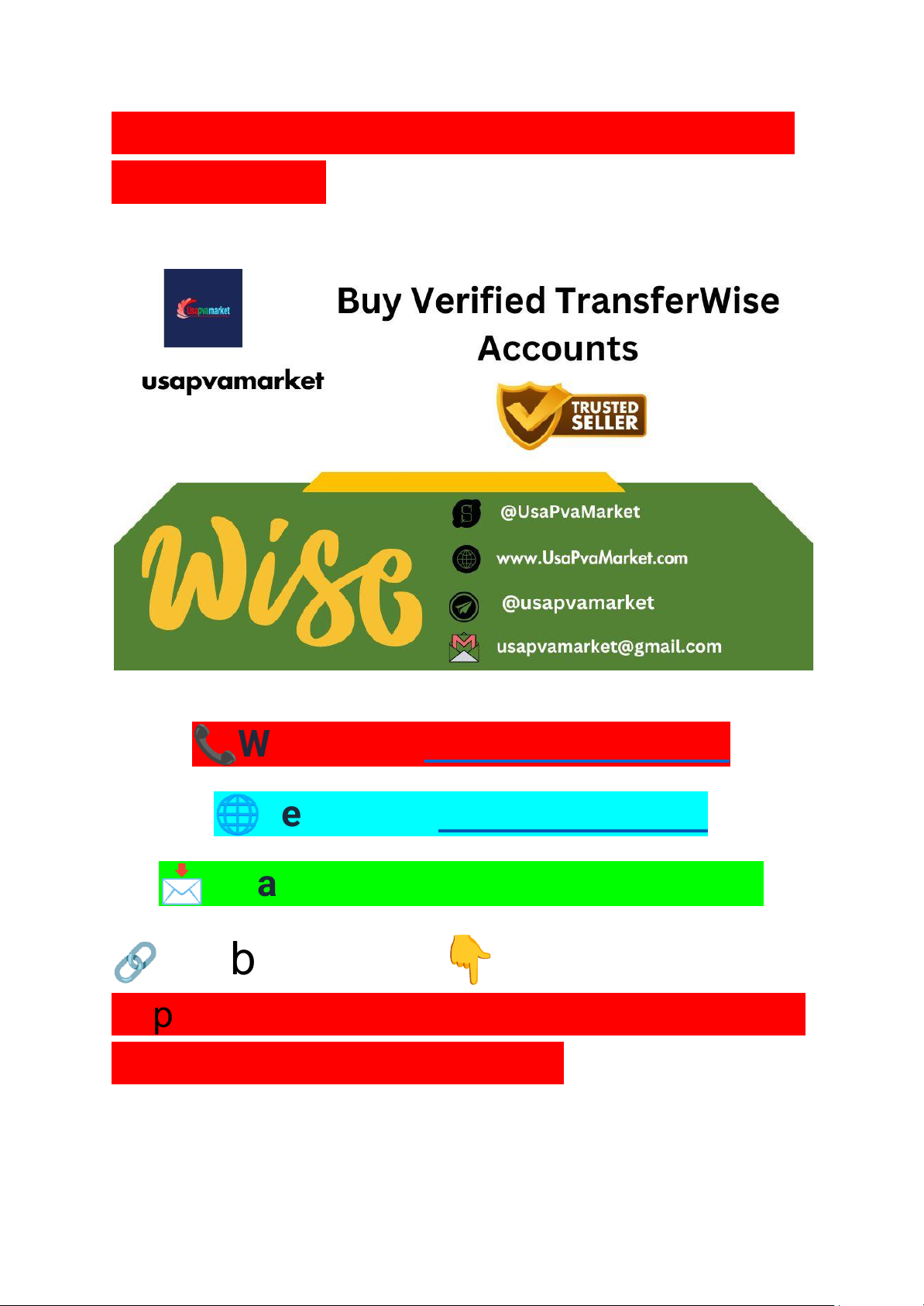 Buy Verified TransferWise Accounts in Europe Fast 📞Whatsapp: +1 (929) 802-2279 🌐Telegram: @usapvamarket 📩Email: usapvamarket@gmail.com 🔗 website Link 👇 https://usapvamarket.com/product/buy-ver ified-transferwise-accounts/ https://wa.me/+19298022279 https://t.me/usapvamarket https://emojipedia.org/thumbs-up Buy Verified Wise Accounts Wise supports multiples currency exchange and could be the best alternative of local banking system. If you are searching for the best quality accounts and want to buy verified wise accounts with all documents this is the right place for you. Our Account Details- ● Email verified ● Number verified ● SSN verified (required country) ● Bank details attached ● Have high transaction limits ● Replacement and cash back guaranteed ● 100% Customer satisfaction guaranteed Please contact us first. And if you have any questions ask us we will try to answer your questions. contact us. Whatsapp: +1 (929) 802-2279 Telegram: @usapvamarket Buy Verified TransferWise Accounts https://wa.me/+19298022279 https://t.me/usapvamarket Investing to buy verified Transferwise accounts offers a lot of benefits. They enhance e-commerce, business operations, trading, and marketing efforts. Secure transactions and global reach make them indispensable. Start leveraging these advantages for smoother, more efficient financial activities. Verified accounts are a smart choice for modern enterprises and savvy individuals alike. Verified TransferWise accounts offer numerous benefits for various industries. They provide a secure platform for international transactions, ensuring that businesses save money on fees. E-commerce platforms benefit from the ease of handling multiple currencies. Trading becomes more efficient with lower exchange rates and faster transfers. They are essential for e-commerce, businesses, trading, and marketing. Buy TransferWise accounts for your wealth safety. What is the real process to buy wise accounts First, find a trusted seller source. Check their customer ratings ratings to ensure credibility. Next, contact the seller and ask for details. Verify the account’s authenticity by requesting screenshots or documents. Once satisfied, agree on a payment method. It’s best to use secure payment options like PayPal or Escrow. Make sure to change the account’s password immediately. Buy aged TransferWise accounts. Check the account’s transaction history. The platform also provides low transaction fees. This saves businesses money. Confirm the account holder’s identity. Use video calls for verification if necessary. Look for reviews https://usapvamarket.com/product/buy-verified-transferwise-accounts/ https://usapvamarket.com/product/buy-verified-transferwise-accounts/ from other buyers. Trusted sellers usually have positive feedback. Buy wise accounts from one of the trusted seller in the USA usapvamarket Why peoples buy verified Wise accounts Wise accounts used to ensure secure, fast, and cost-effective international transactions. Marketing teams can manage global payments smoothly. These accounts also offer robust security features, protecting your transactions from fraud. Verified accounts provide enhanced security features. Buy verified Wise accounts. Protect your funds with multi-layer security. Wise uses advanced encryption. This keeps your transactions safe and secure. E-commerce businesses can trust wises reliability. Save money on fees with these accounts. Wise gives the best exchange rates. This helps e-commerce businesses reduce costs. More savings means better profits for your business. Buy Verified TransferWise accounts at usapvamarket.com What are the advantages peoples get if they have wise accounts Verified Transferwise accounts help businesses reach a global audience. They facilitate international payments easily. They also support multiple currencies. This reduces the hassle of currency exchange. Wise offers fast and secure transactions. This ensures that money moves quickly. Buy aged TransferWise accounts. Businesses face fewer delays. The platform also provides low transaction fees. This saves businesses money. Wise is a popular money transfer service. It helps users send money across borders. Users can enjoy low fees and real exchange rates. The service is fast and secure. How does wise make easier international payments Wise transforms international payments for businesses across various industries, offering transparent fees and real exchange rates. Enjoy seamless transactions with a user-friendly platform, enhancing efficiency and reducing costs. Wise is a company that makes international payments easy. Wise was founded in 2011. Wise helps businesses send money abroad. They make it fast and cheap. Millions of people trust Wise. Buy Verified TransferWise Accounts Wise wants to make money transfer fair. They aim to reduce fees. They promise no hidden costs. Their vision is to help everyone save money. Wise believes in transparency. They work hard to keep their services simple. They use Wise to move money across borders. Wise has offices in many countries. Wise shows the exact fee before any payment. This helps in making informed decisions. Buy aged TransferWise accounts. How wise glow user experience https://usapvamarket.com/product/buy-verified-transferwise-accounts/ Wise offers a simple and clear interface. Users can easily navigate through the platform. No complex steps are required. Every feature is easy to find and use. Wise uses real-time exchange rates. These rates are often better than banks. Businesses save money on currency conversion. This is crucial for companies dealing internationally. Wise’s exchange rates are fair and competitive. This means your transactions are always legal and secure. Wise integrates smoothly with popular business tools. Companies can connect Wise with their accounting software. This integration saves time and reduces errors. It also helps businesses manage finances efficiently. The pro