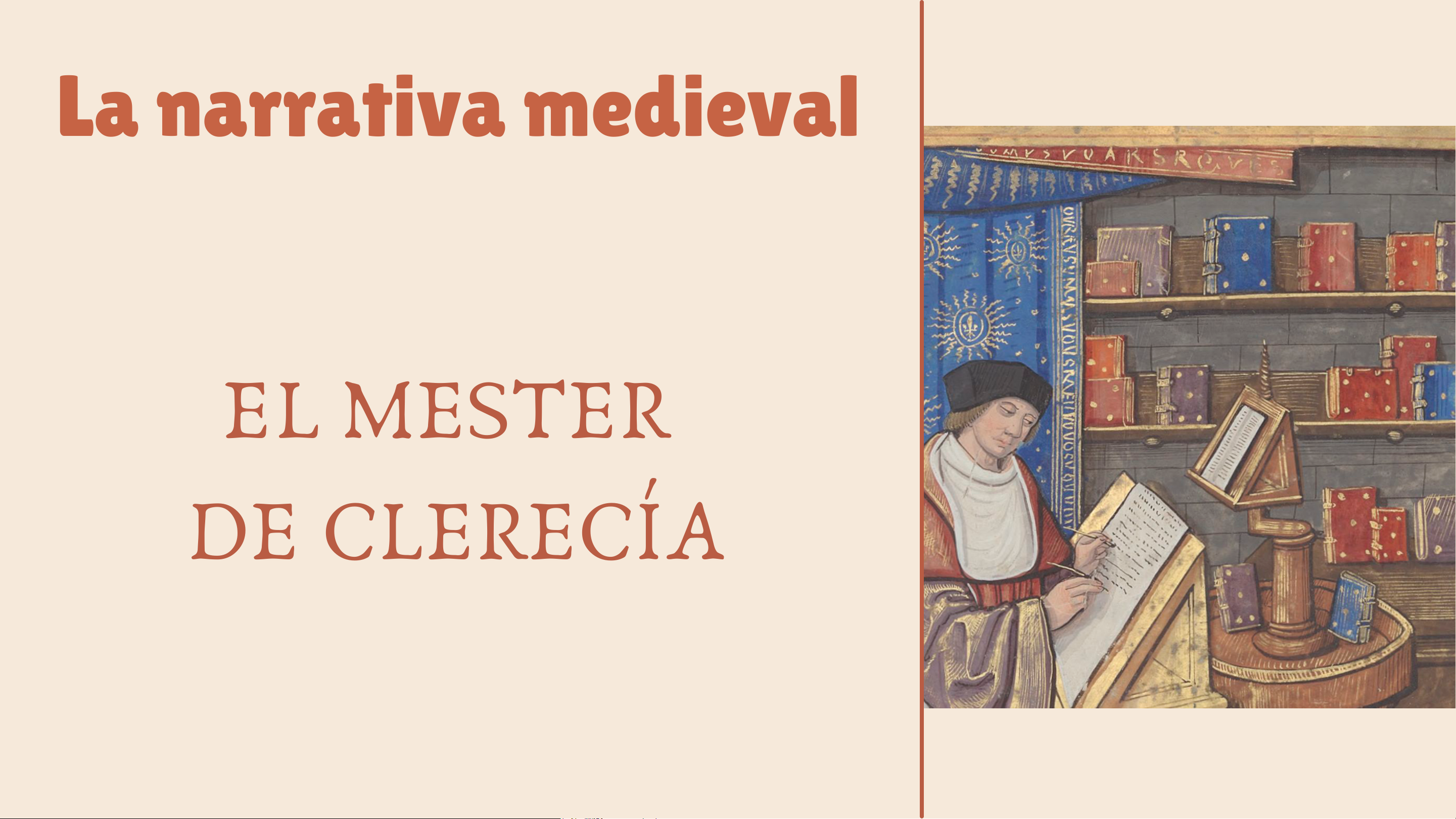 La narrativa medieval En verso y escrita EL MESTER DE CLERECÍA L E N G U A C A S T E L L A N A Y L I T E R A T U R A - 3 . º E S O Z A I R A G A R C Í A LI T E R A T U R A M E D IE V A L 1. Contexto histórico y literario 2. La lírica popular 3. La narrativa medieval En verso El mester de juglaría: Cantar de Mio Cid El mester de clerecía En prosa: El conde Lucanor 4. El teatro medieval: La Celestina ÍNDICE L E N G U A C A S T E L L A N A Y L I T E R A T U R A - 3 . º E S O Z A I R A G A R C Í A La narrativa medieval L E N G U A C A S T E L L A N A Y L I T E R A T U R A - 3 . º E S O Z A I R A G A R C Í A s. XII s. XV ORAL ESCRITA L E N G U A C A S T E L L A N A Y L I T E R A T U R A - 3 . º E S O Z A I R A G A R C Í A En verso y escrita La narrativa medieval MESTER DE JUGLARÍA: difusión oral MESTER DE CLERECÍA: difusión escrita Cantares de gesta Obras escritas MESTER DE CLERECÍA L E N G U A C A S T E L L A N A Y L I T E R A T U R A - 3 . º E S O Z A I R A G A R C Í A Etapas del Mester de Clerecía · Primera etapa: Durante el s. XIII - temas religiosos e históricos. Libro de Aleixandre (anónimo) y Gonzalo de Berceo. · Segunda etapa: Durante el s. XIV - mayor variedad temática y estrófica. Libro de buen amor, de Juan Ruiz, Arcipreste de Hita. Primer poeta castellano de nombre conocido. L E N G U A C A S T E L L A N A Y L I T E R A T U R A - 3 . º E S O Z A I R A G A R C Í A MESTER DE CLERECÍA